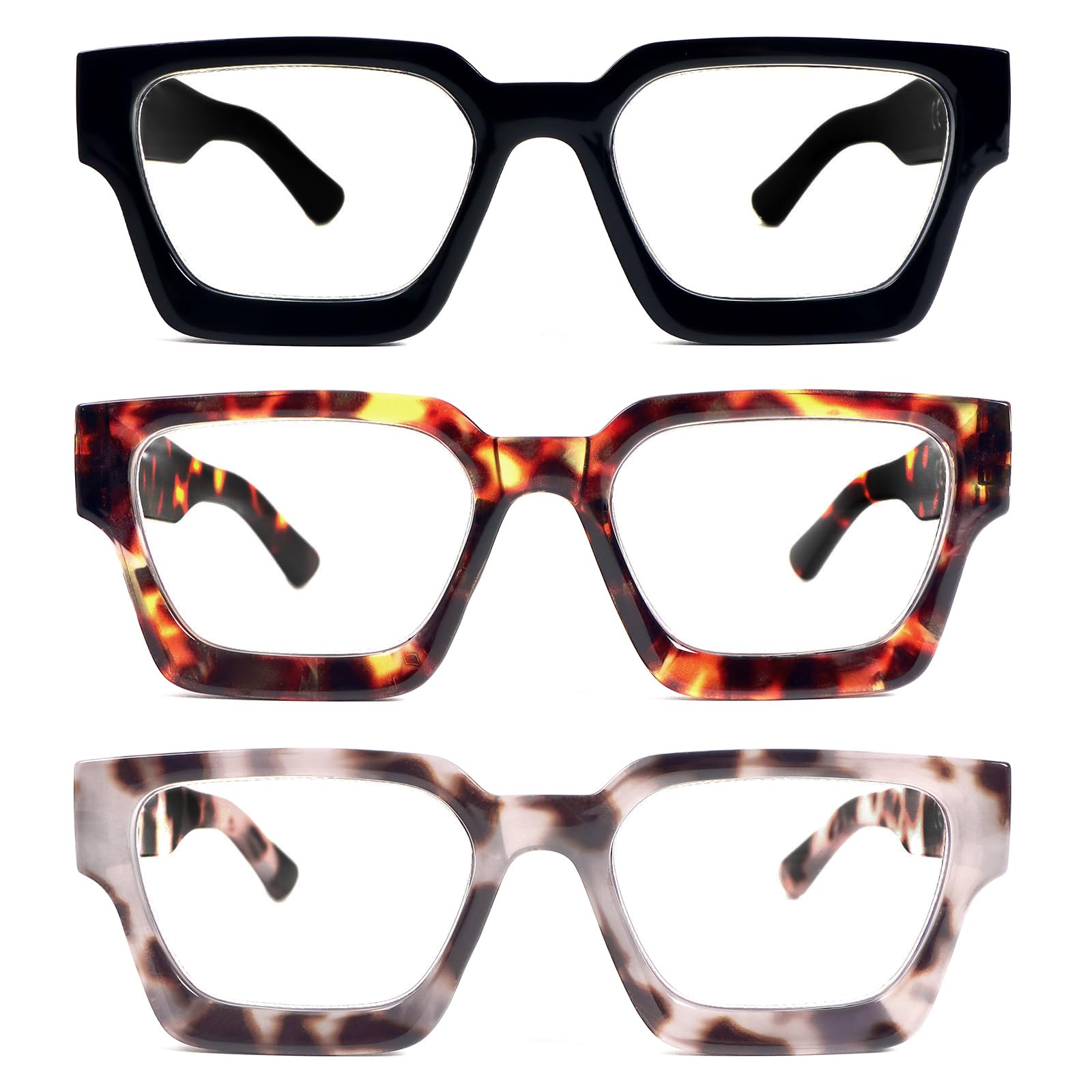 REAVEE 3 Pack Thick Frame Reading Glasses for Women Men, Oversized Fashion Blue Light Blocking Readers Spring Hinge|Health & Beauty