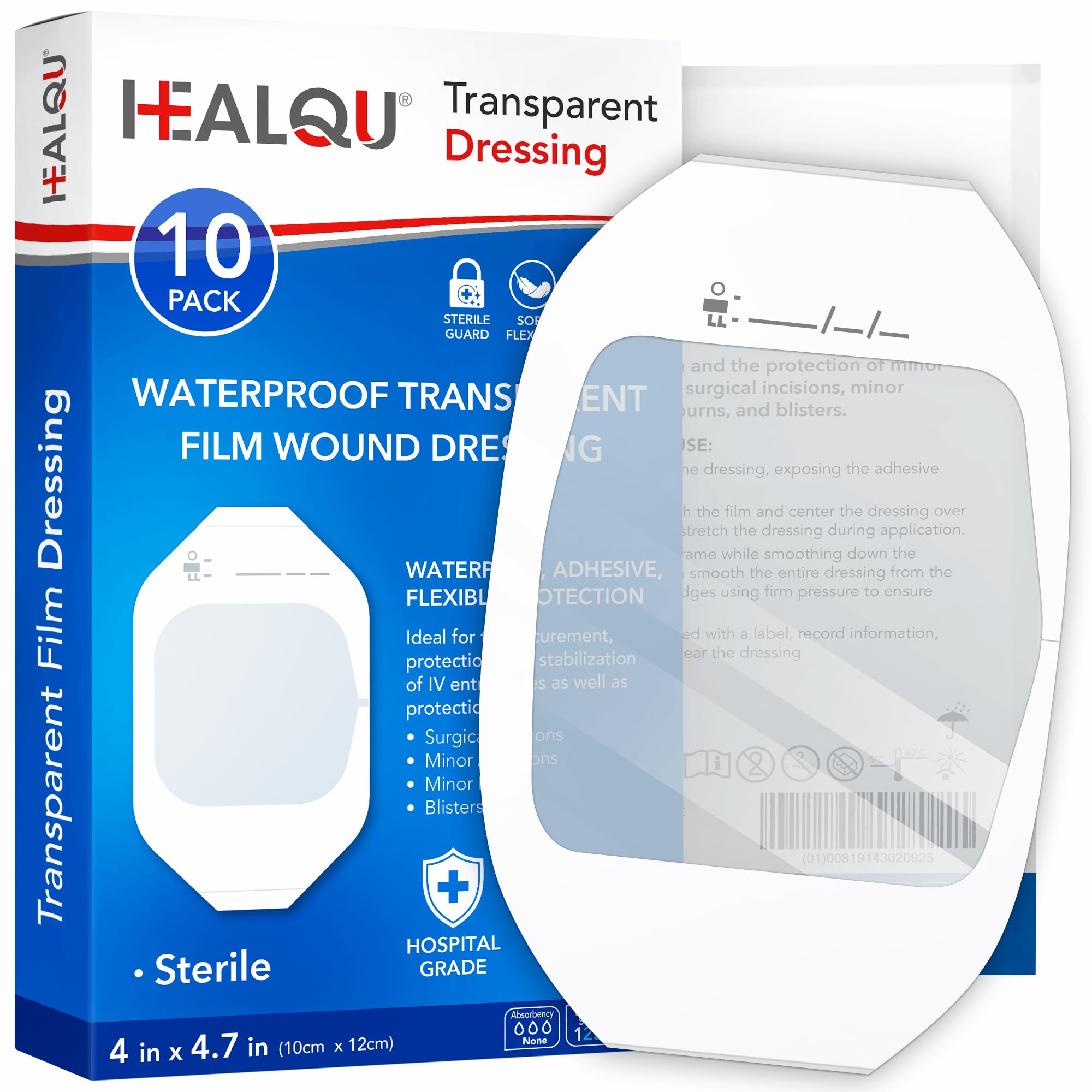 Transparent Film Dressing 4" x 4.75" (10 Pack) - Waterproof Adhesive Wound Bandages for Post-Surgical Shower, IV Shield, Tattoo Aftercare, Clear|Health & Beauty