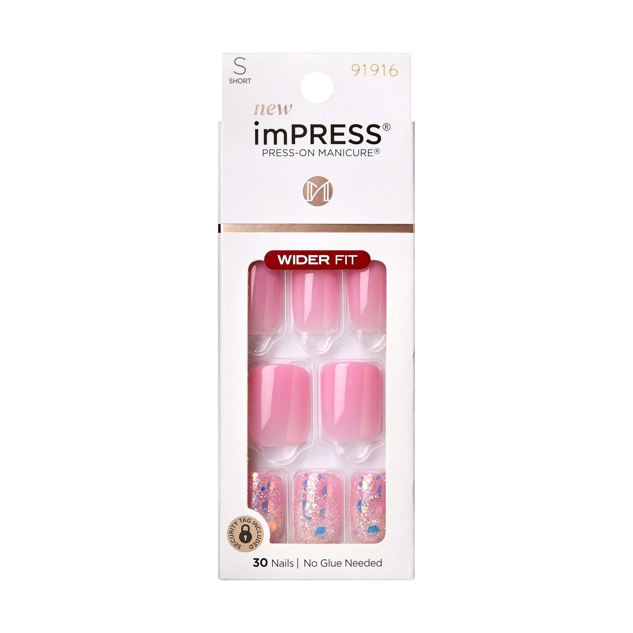 KISS imPRESS No Glue Mani Press-On Nails, Design, 'Dream It Up', Light Pink, Short Size, Wider Squoval Shape, Includes 30 Nails, Prep Pad,|Health & Beauty