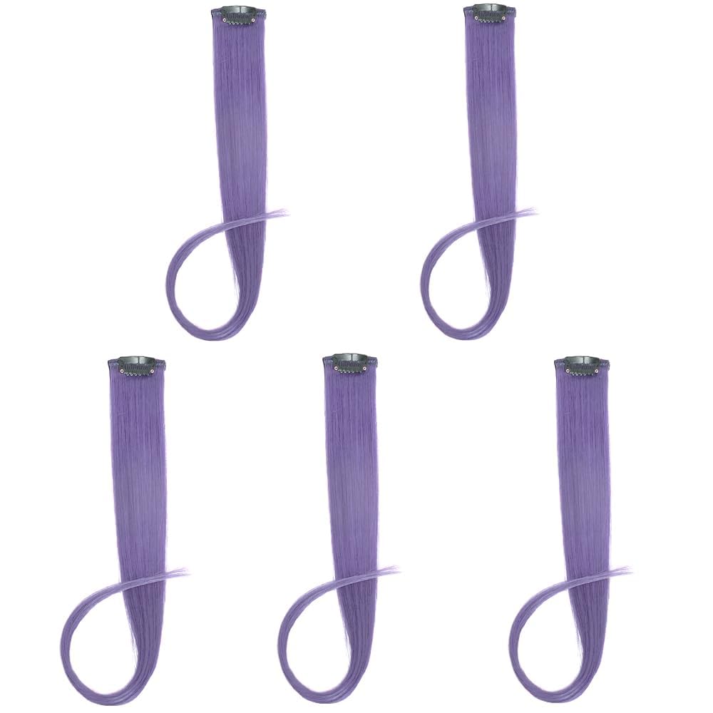 Flying Beauty 18 Inches 5 Pcs Colored Party Highlights Straight Hair Clip in Human Hair Extensions in Multiple Colors (Light Purple)|Health & Beauty