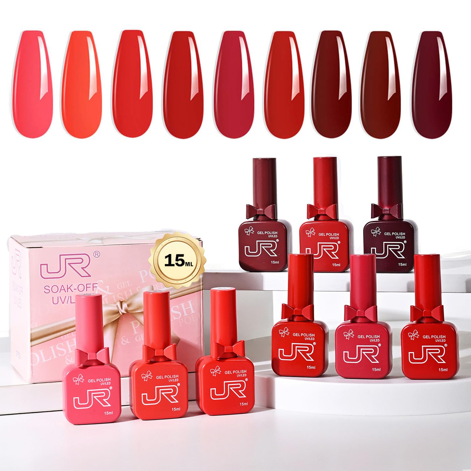 JR 9pcs 15ml Nail Gel Polish Bloody Mary Red Set UV Manicure Gel Nail Polish Kit Soak Off Polish Home DIY Gift J|Health & Beauty