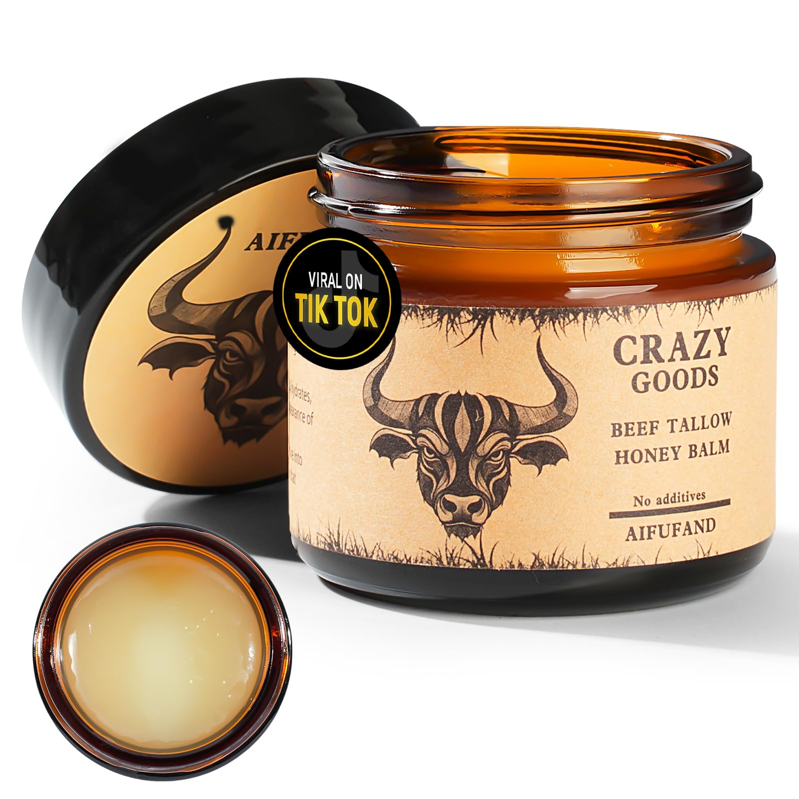 qvkzl Organic Grass-Fed Beef Tallow Balm with Raw Honey - Whipped Tallow Cream for Face, Dry Skin - All-Natural Moisturizer for Nourished,|Health & Beauty
