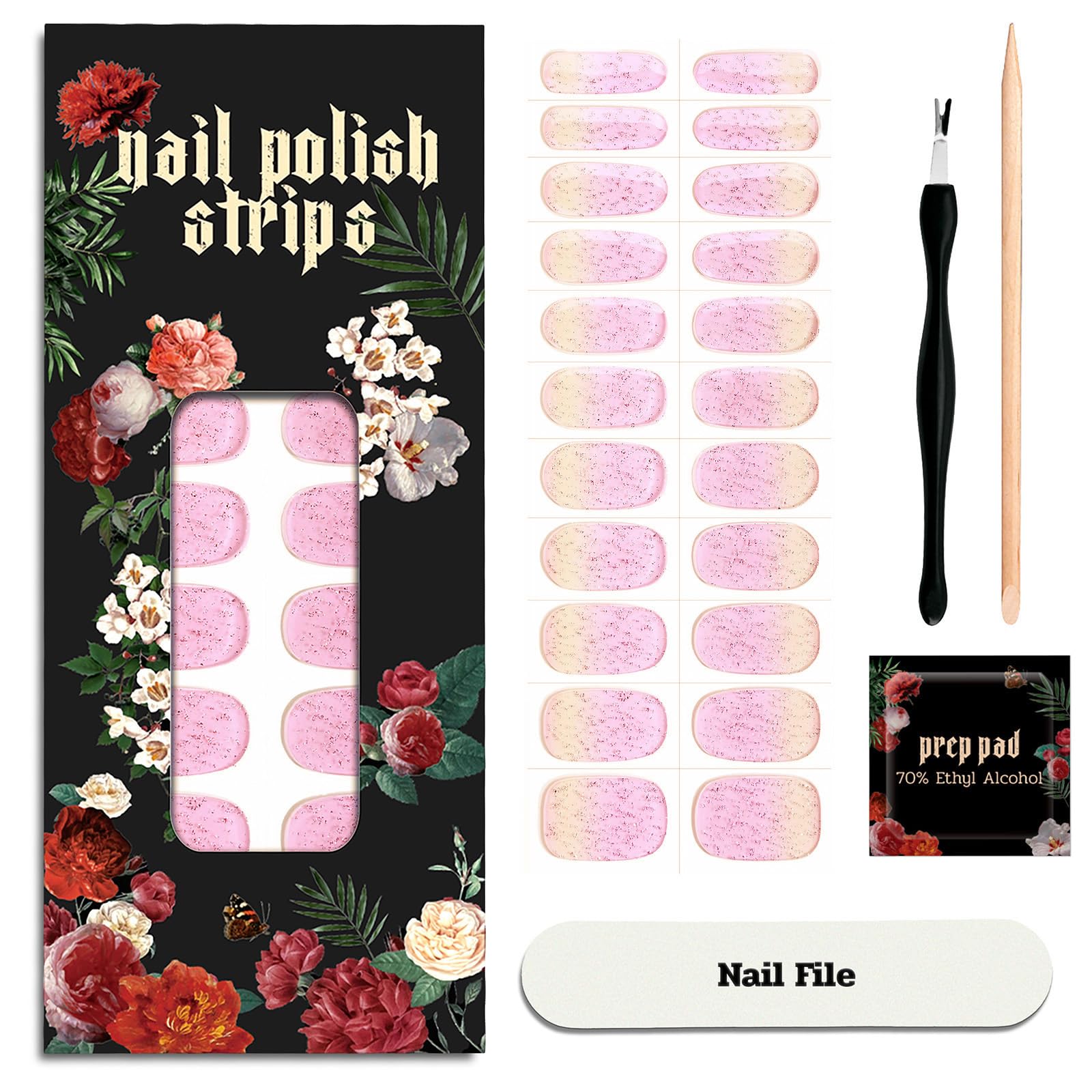 ruyeefam Nail Polish Strips - 22 Pcs Salon Quality Gel Nail Stickers - Long Lasting Wraps (Vintage Rose Glitter)|Health & Beauty