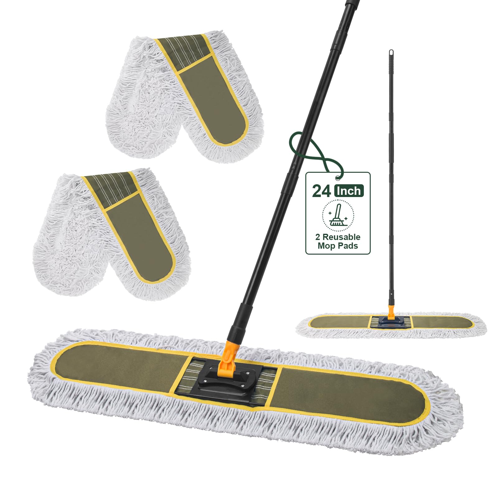 Ylebs 24" Commercial Dust Mops for Floor Cleaning with 2 Replacement Mop Pads, Heavy Duty Large Dust Mop for Hardwood Floors, Industrial Wet Dry Floor|Health & Beauty