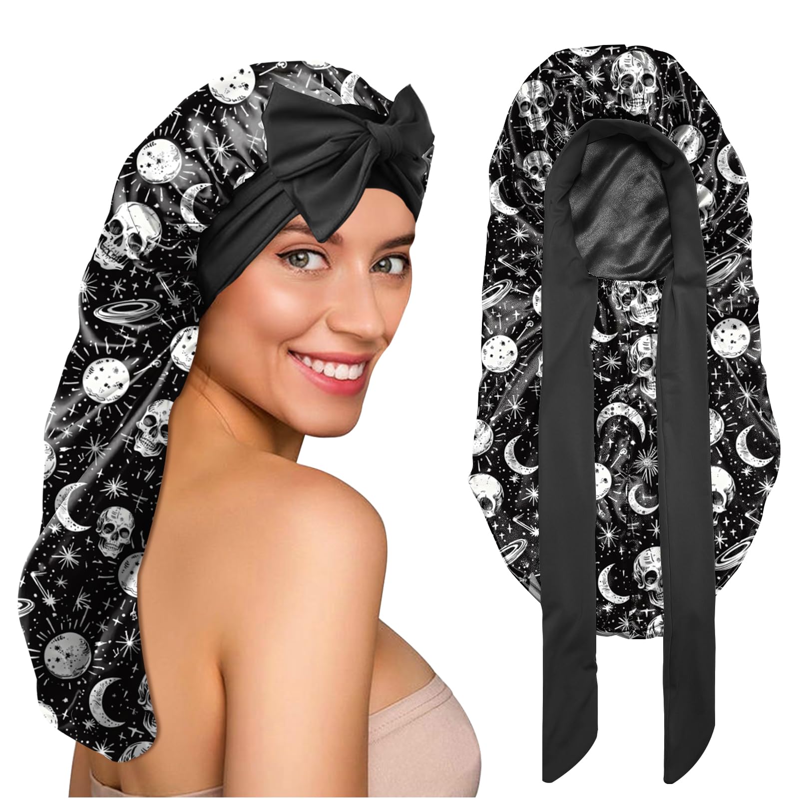 BHAHB Silk Long Satin Hair Braid Bonnet for Sleeping Adjustable Double Layer Elastic Reusable Long Hair Caps Cute Aesthetic for Women Girls-Star|Health & Beauty