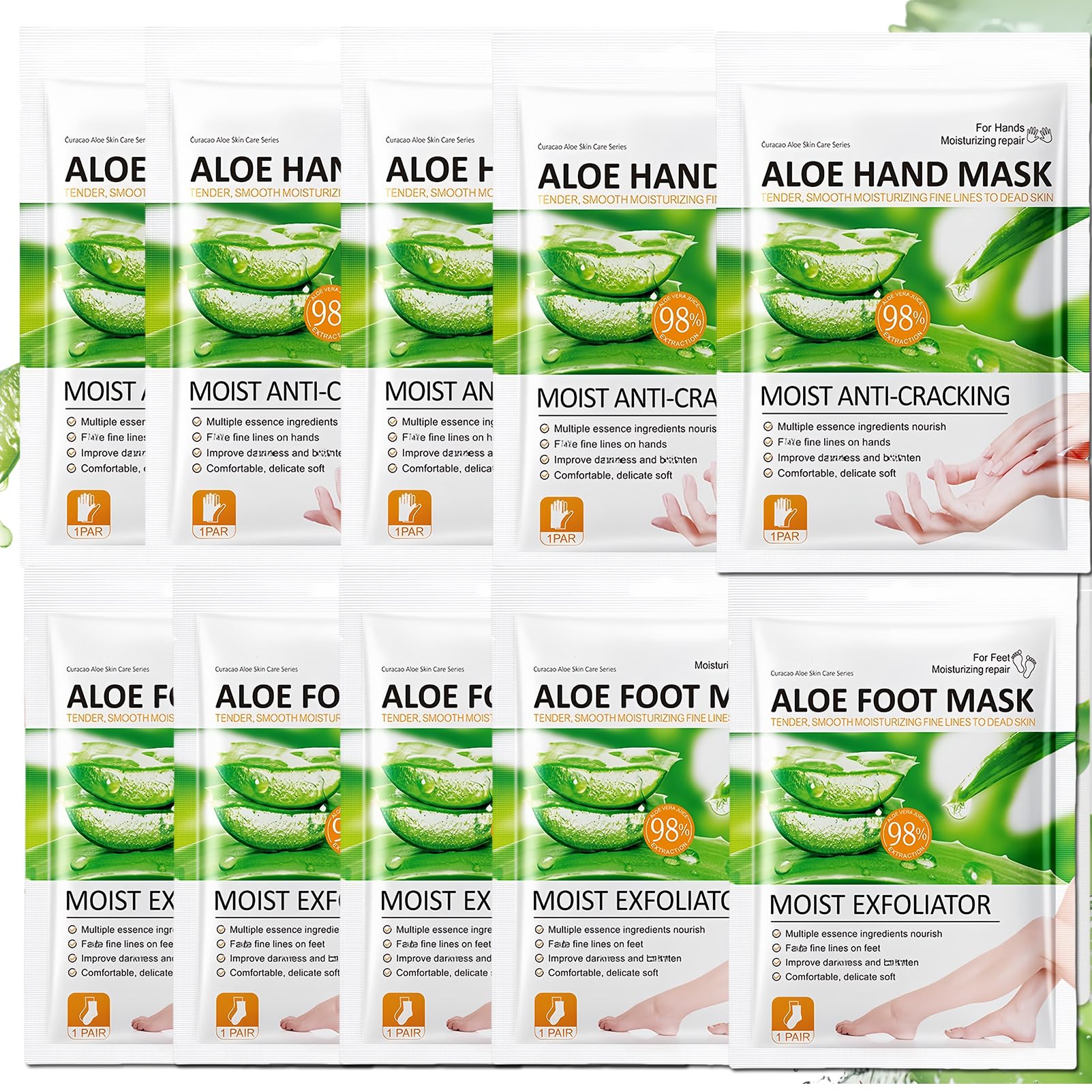 10 Pairs Aloe Vera Hand and Foot Mask Set, 5 Pcs Moisturizing Foot Peel Mask & 5 Pcs Hand Gloves for Dry Cracked Skin, Hydrating Spa Treatment for|Health & Beauty