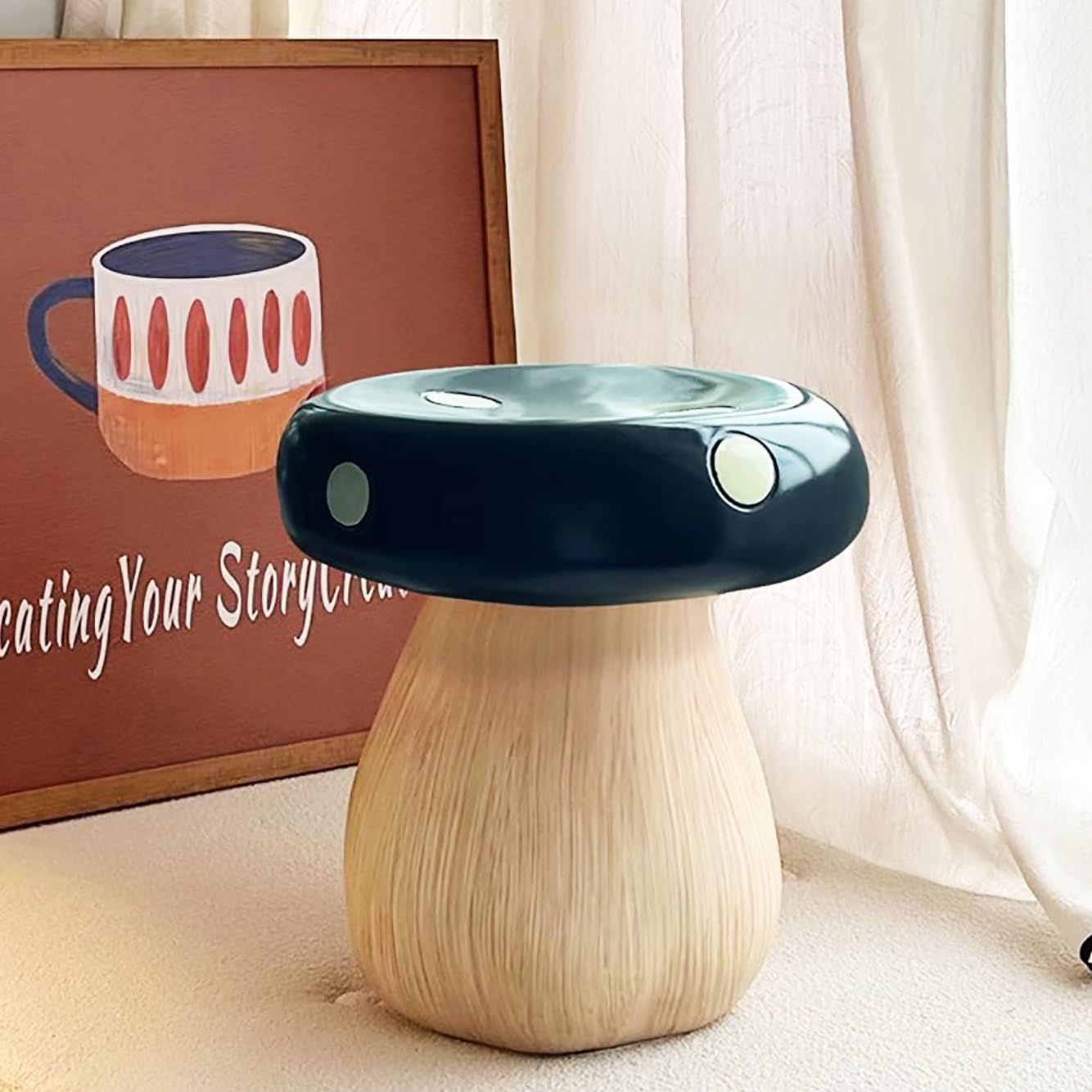 peilouw Mushroom Stool,Cute Mushroom Ottoman for Boy and Girl,Resin Mushroom Chair Small Mushroom Entryway Shoe Stool,Home Decor Mushroom Side Table|Home & Garden