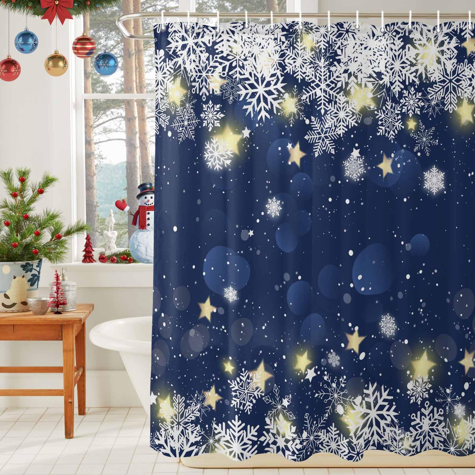 DecorLovee Navy Blue Snowflake Christmas Shower Curtain, Yellow Xmas Star Shine Waterproof Shower Curtains for Bathroom, Winter Snowflake Washable|Home & Garden