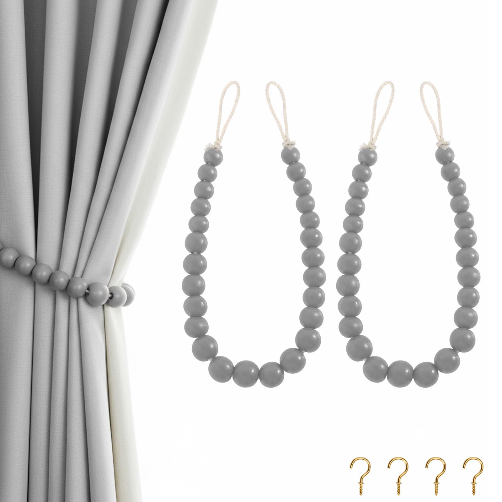 Hion 2 Pcs Boho Curtain Tiebacks,Wood Beads Curtain Holdbacks,Outdoor Farmhouse Tie Backs for Curtains,Curtain Holders for Drapes Home Office Room|Home & Garden