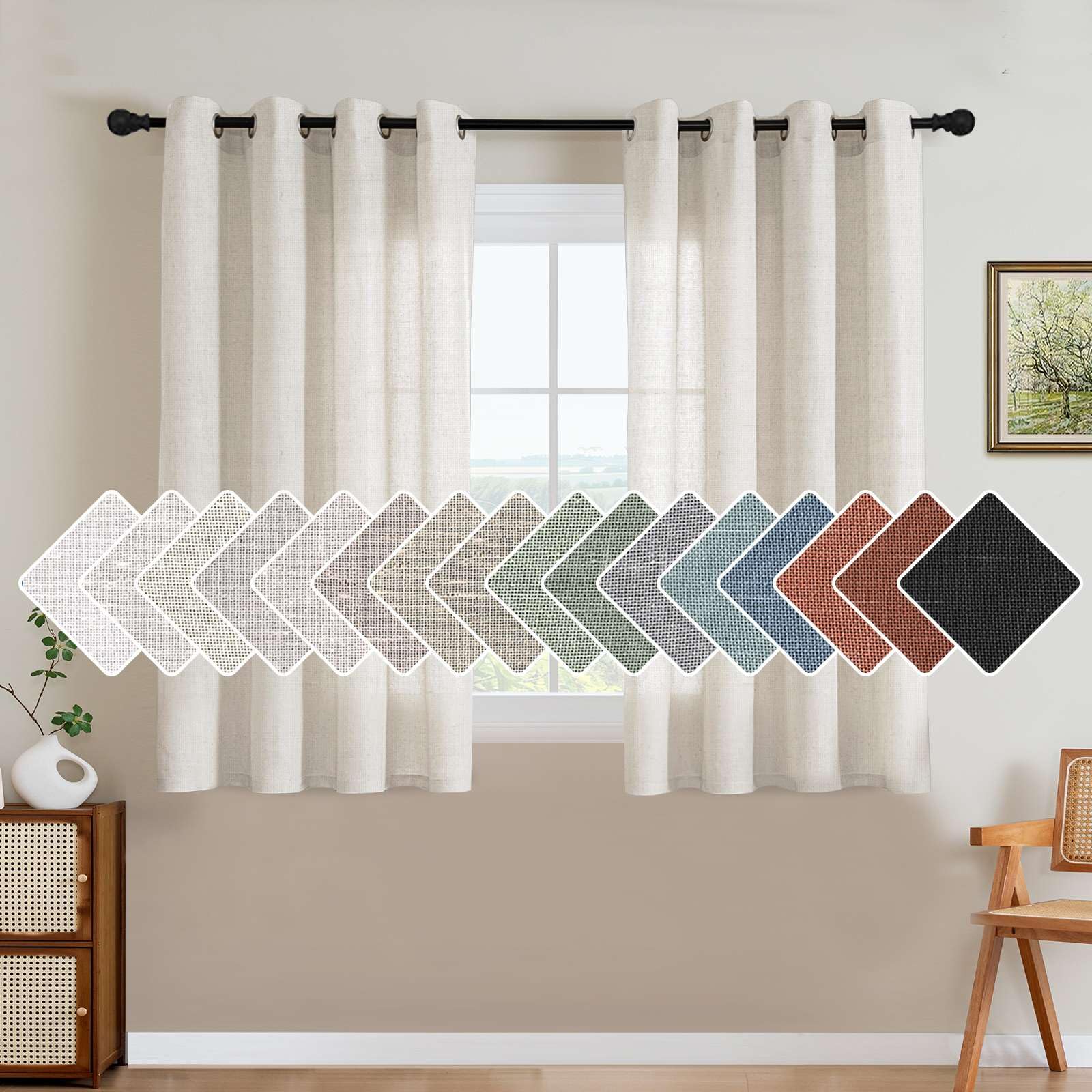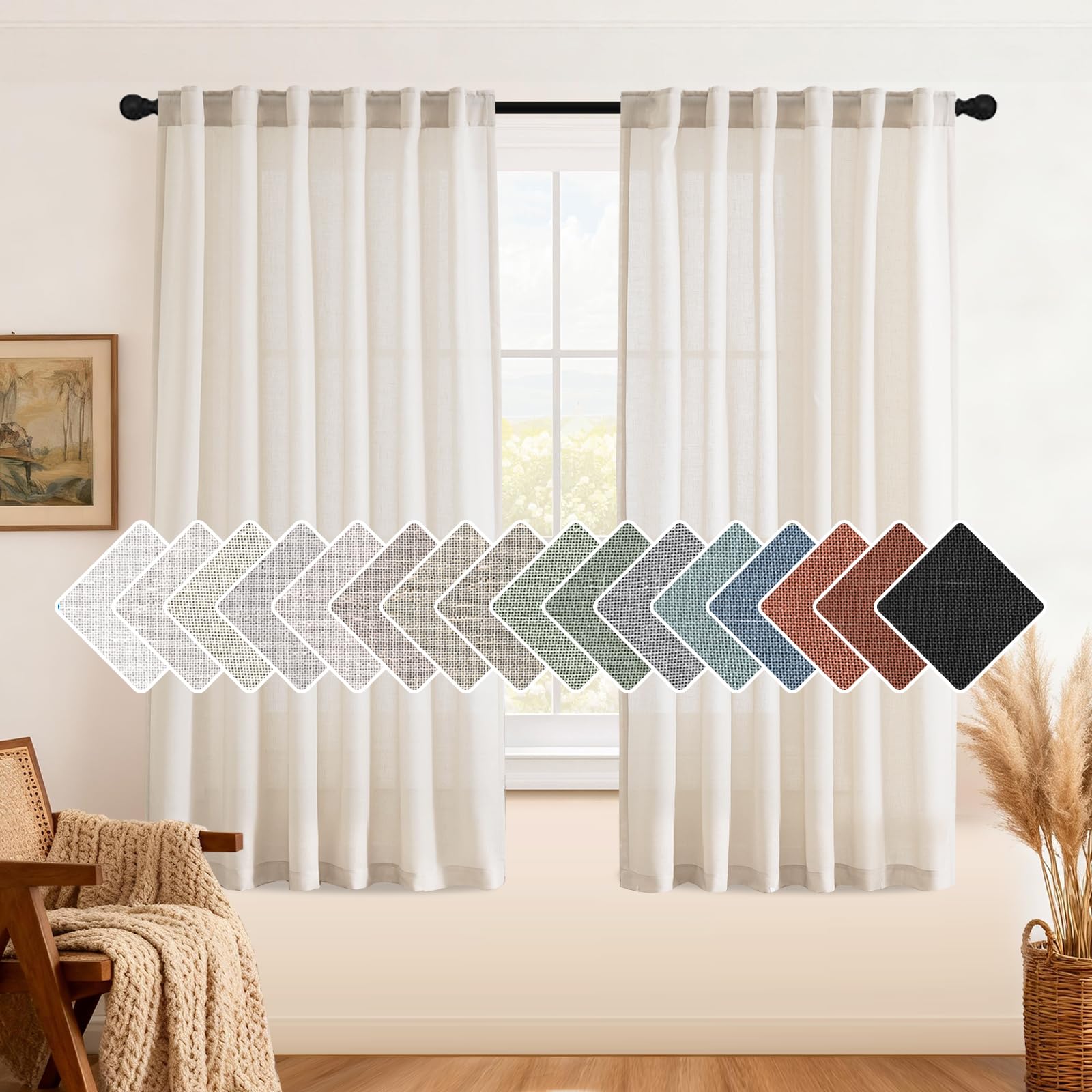 H.VERSAILTEX Natural Linen Curtains 63 inches Long for Living Room 2 Panels Back Tab Loop Pocket Textured Light Filtering Semi Sheer Curtains Rustic|Home & Garden