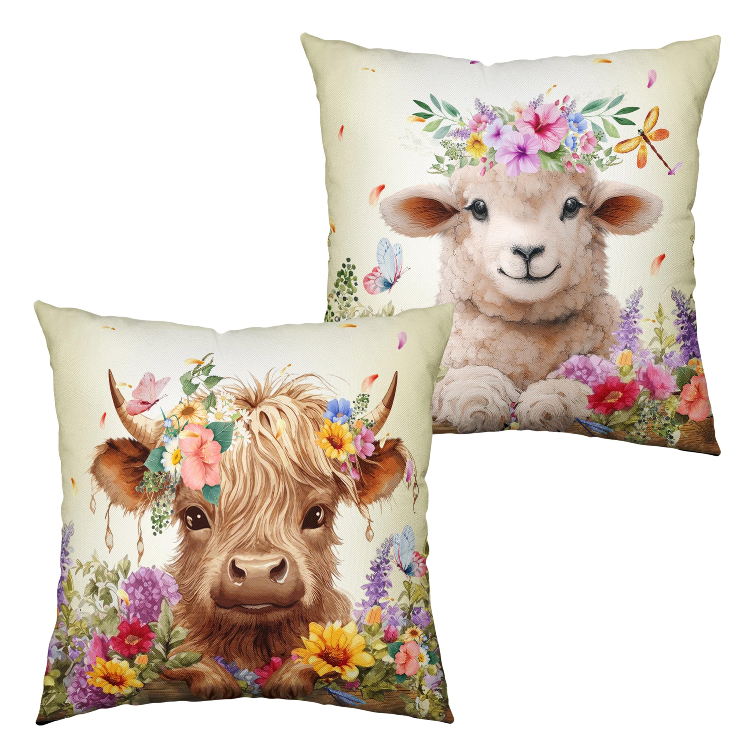 Kwlegh Lamb Cattle with Flowers Pillow Covers 22x22 Set of 2 Sheep and Highland Cow Throw Pillow Covers Spring Farm Theme Outdoor Pillowcase Farmhouse|Home & Garden