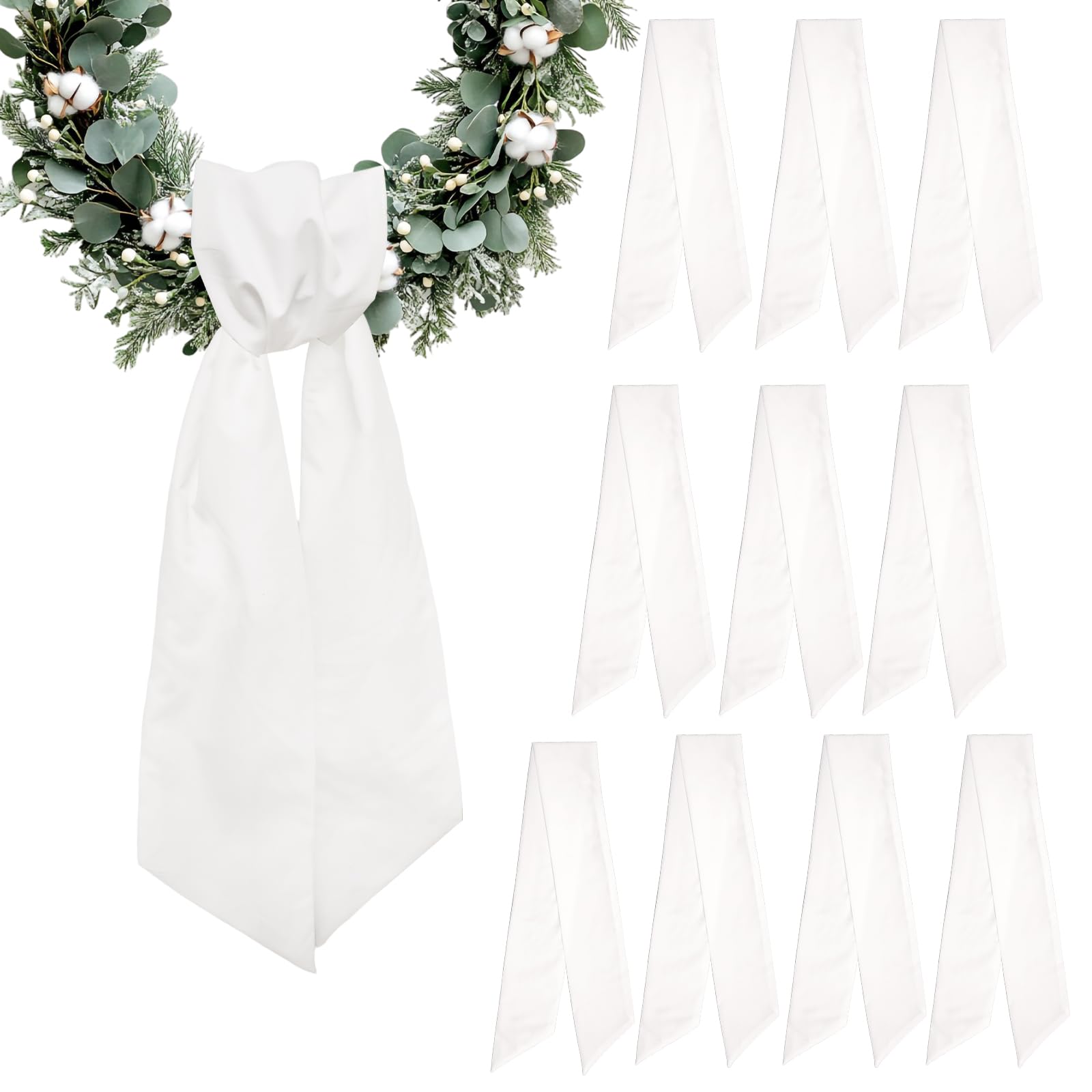 Vickasi 10 Pieces Christmas Wreath Sash for Front Door, Winter White Cotton Ribbon Bow for Wreath Decorations|Home & Garden