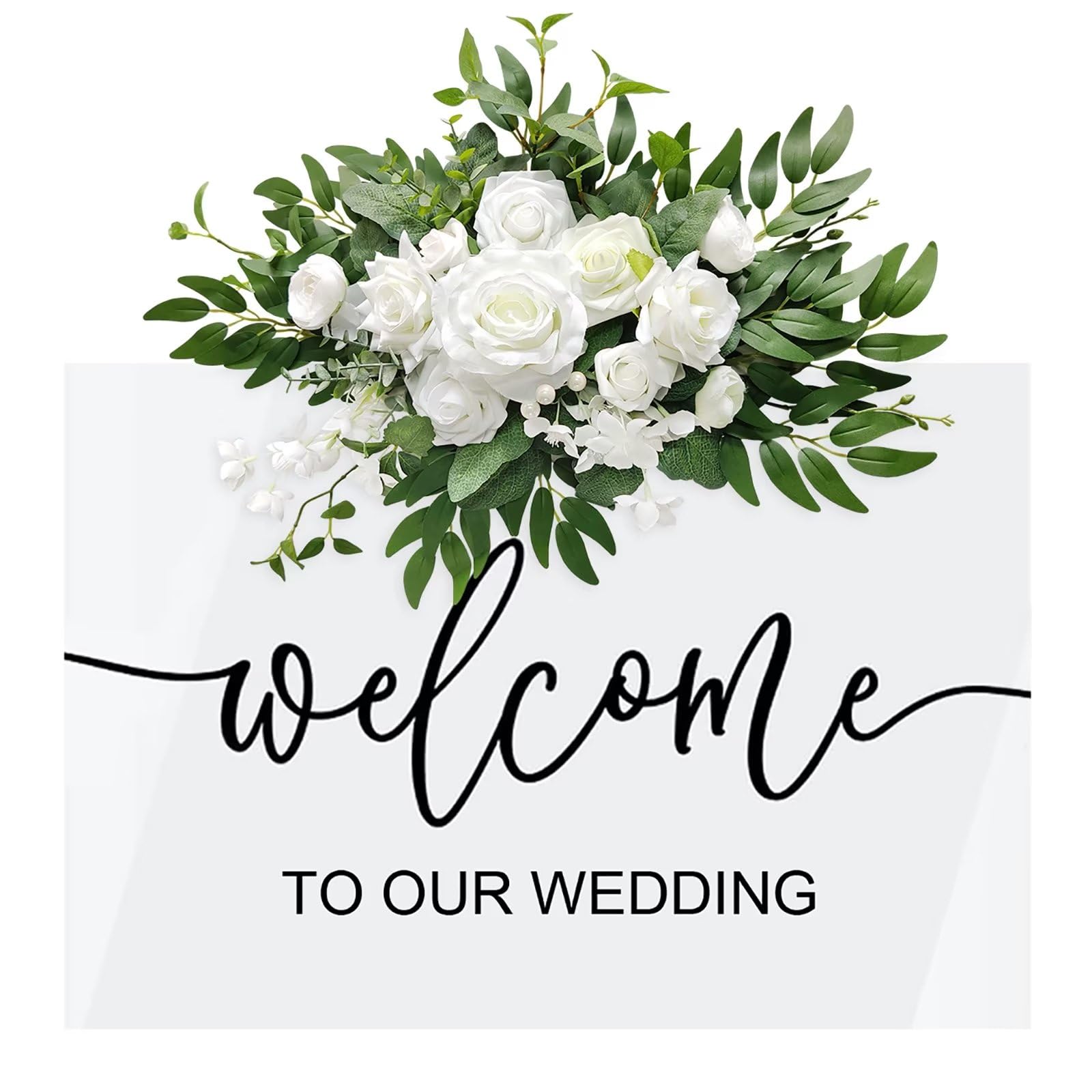 Roahosy Artificial Flower Swag, Wedding Sign Flowers White Rose Flower Arrangements for Wedding Ceremony Reception Entrance Welcome Board Sign Floral|Home & Garden