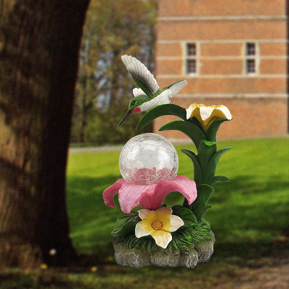 Eletina Resin Hummingbird Solar Light with Flower Garden Decorations,Waterproof Statues and Figurines Light Garden Art for Patio Lawn Yard Decorations|Home & Garden