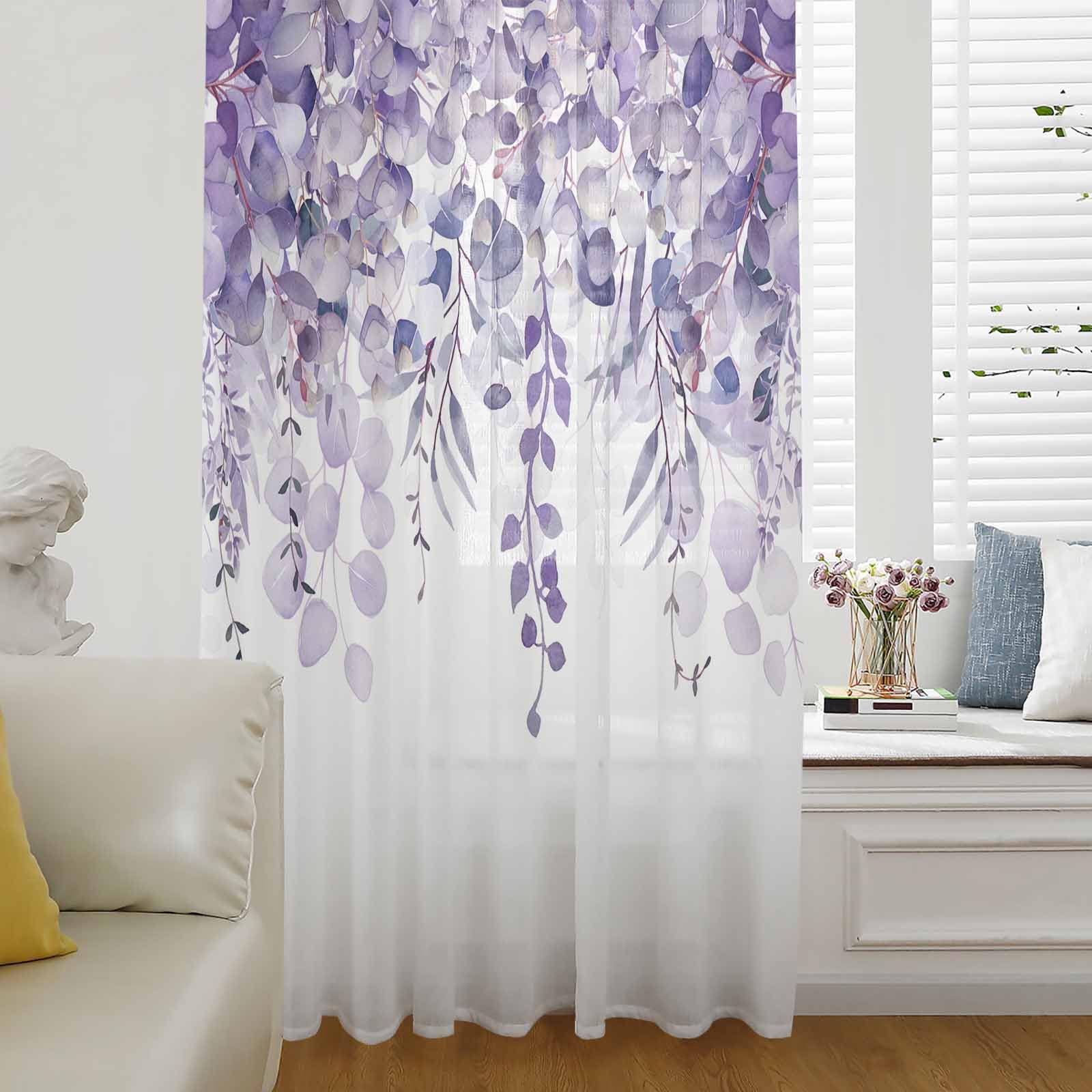 Purple Eucalyptus,Romantic Elegant Flower Leaves Herbs Semi Sheer Curtains Drapes for Living Room, Bedroom, French Doors Window 84 Inches Long, Rod|Home & Garden