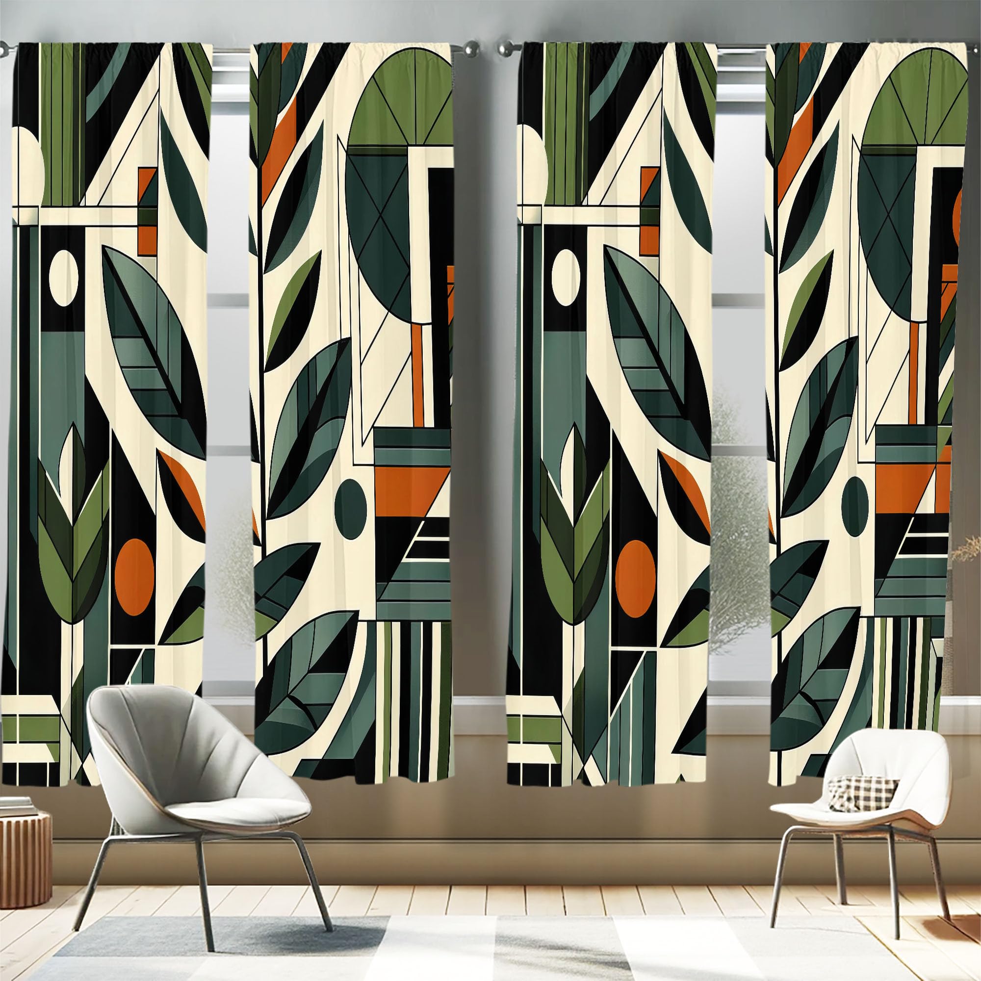 Ambesonne Mid Century Modern Window Curtains Pack of 2, Abstract Design of Futurist Boho Jungle and Geometric Leaves, Lightweight Set & Rod Pocket, 4|Home & Garden