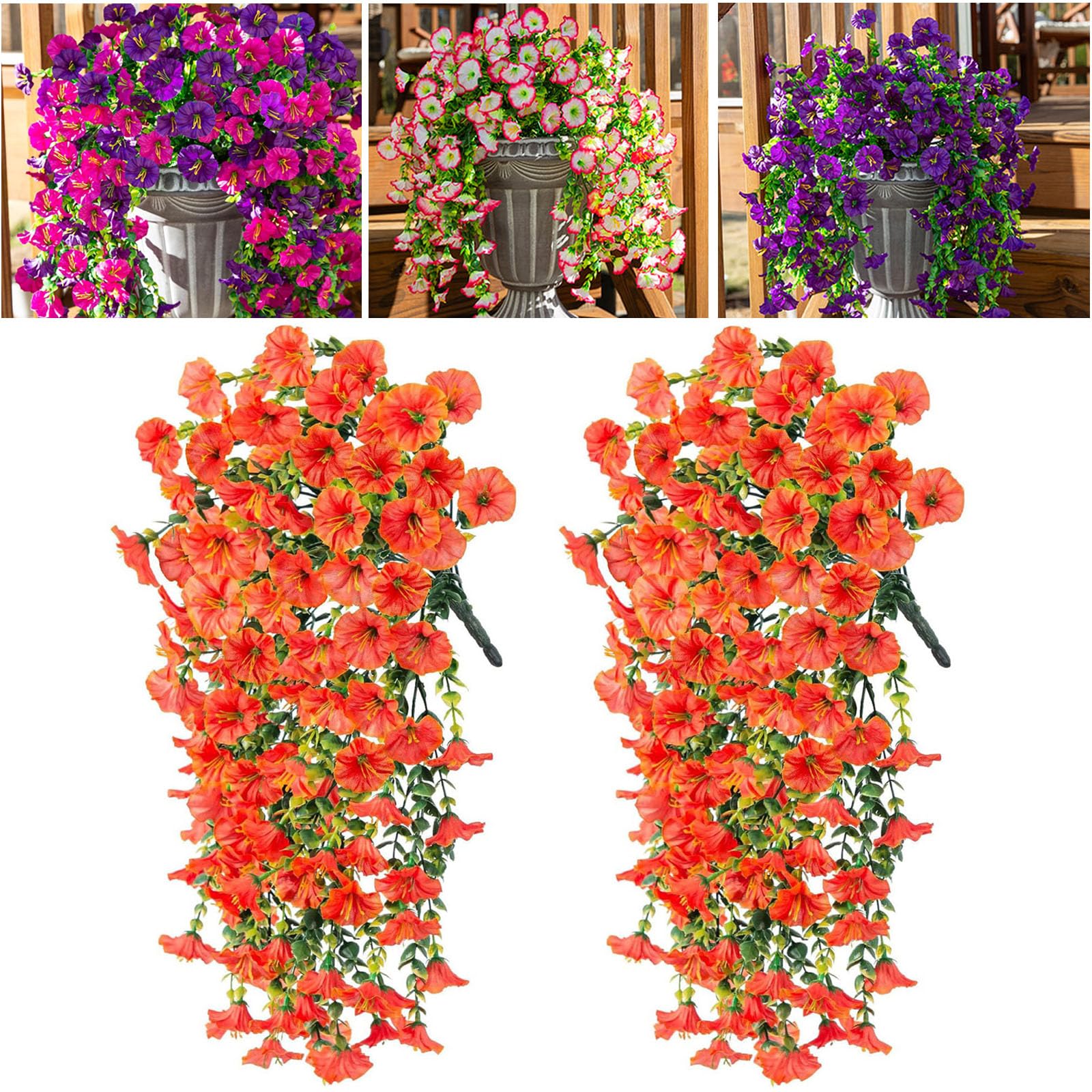 RJDJ Precisetrue Hanging Morning Glory, 75cm Artificial Hanging Morning Glory Flowers, Uv Resistant Faux Plants Flower for Home Porch Patio Garden (2,|Home & Garden