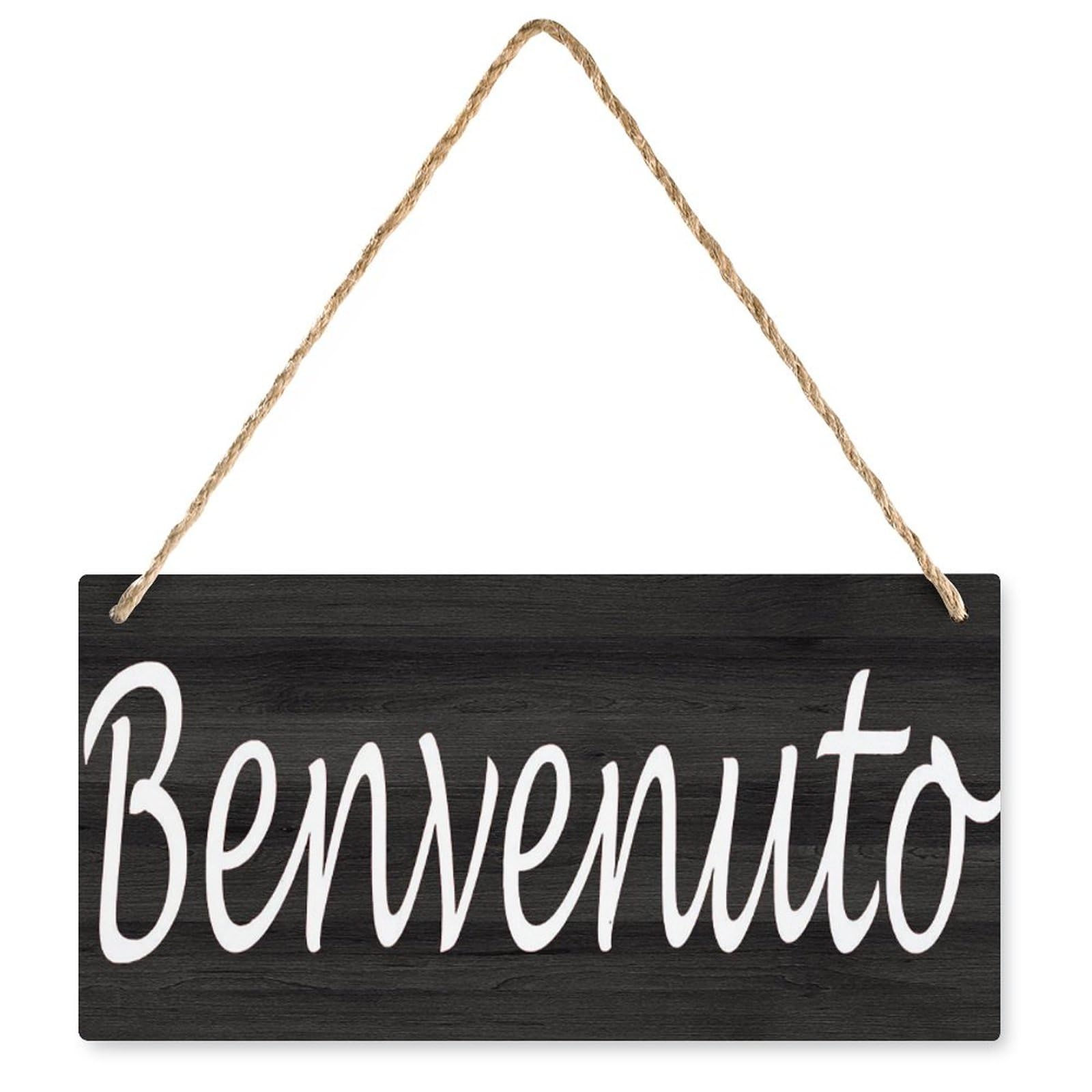 Benvenuto Welcome Wood Sign Italian Welcome Wooden Wall Art Decor Decorative Plaque Sign For House Family Living Room Bedroom Kitchen 12X 6 Inch|Home & Garden