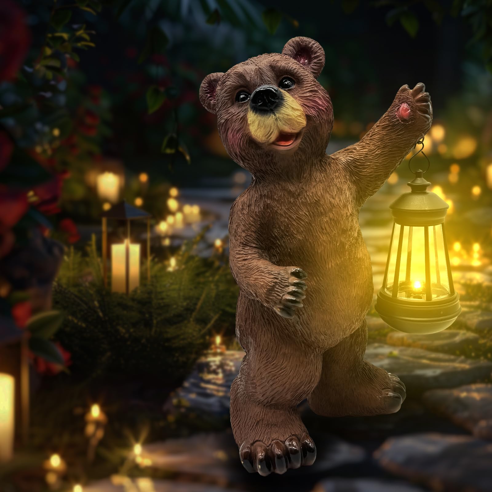 GATSUNS Solar Lantern Garden Statues Decor, 14" Large Outdoor Bear Figurine Lights for Yard Patio Decoration - Unique Christmas Housewarming Gift for|Home & Garden