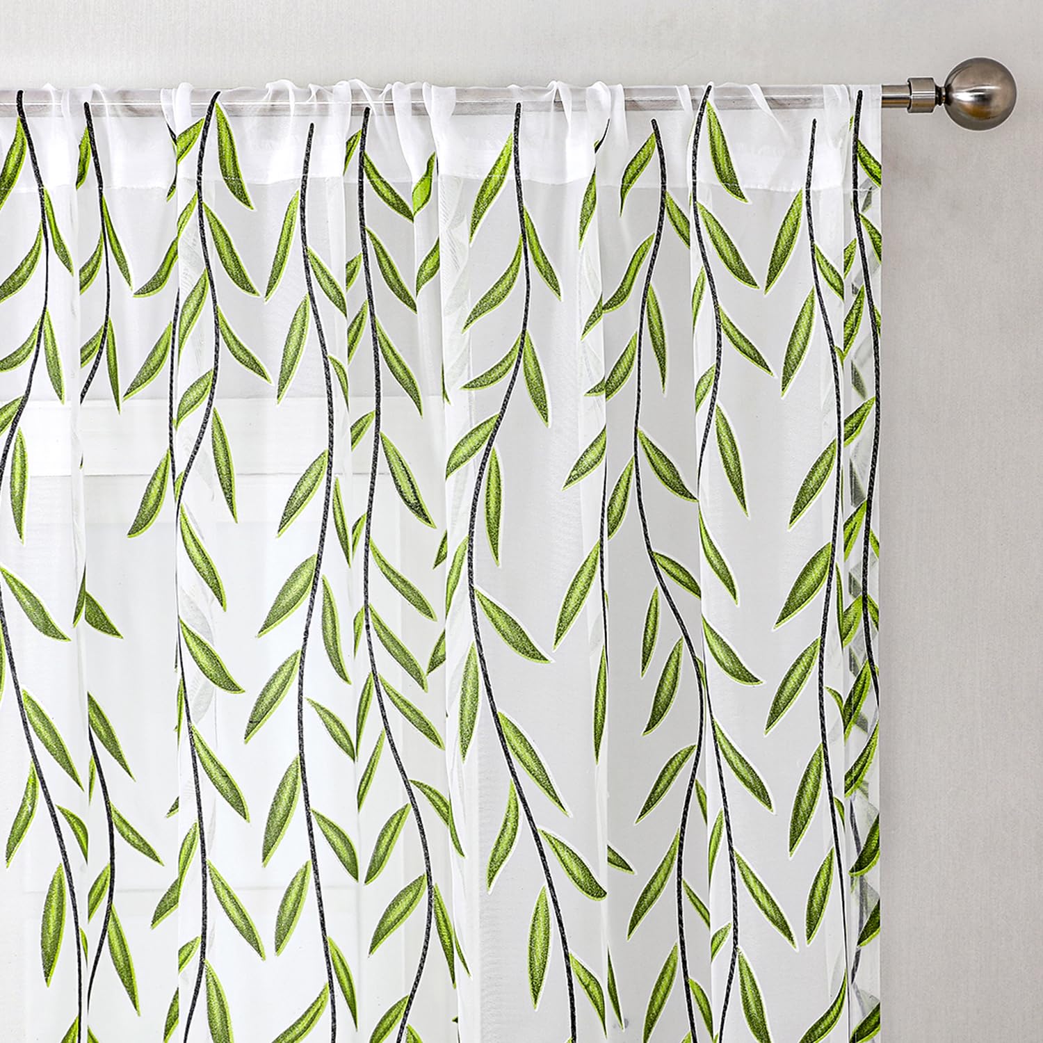 BROSHAN 72 inch Length Sheer Curtains for Windows, Light Green Leaves Pattern White Sheer Curtains 2 Panel Vine Curtains 72 inches Long Transparent|Home & Garden