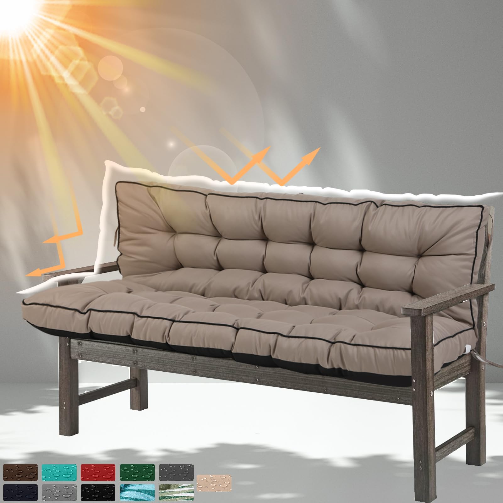 HIYEN Porch Swing Cushions 3 Seater Replacement, Waterproof Bench Cushions for Outdoor Furniture with Backrest, 4" Thickened Patio Swing Cushion with|Home & Garden