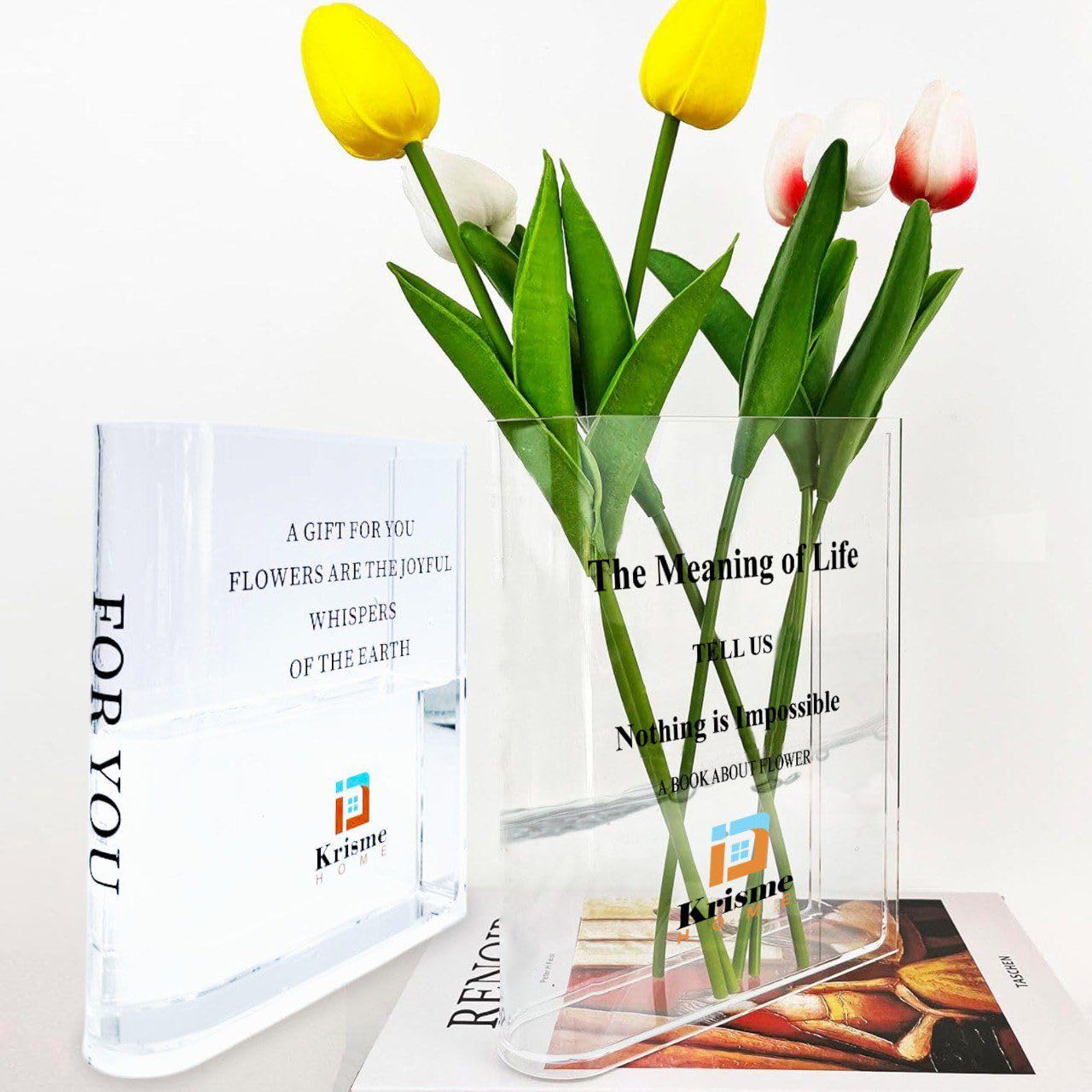 Krisme Home Acrylic Book Vase Set of 2 - Decorative Vases for Flowers, Bookshelf and Bedroom Accents - Aesthetic Room and Office Decor - Unique Gifts|Home & Garden