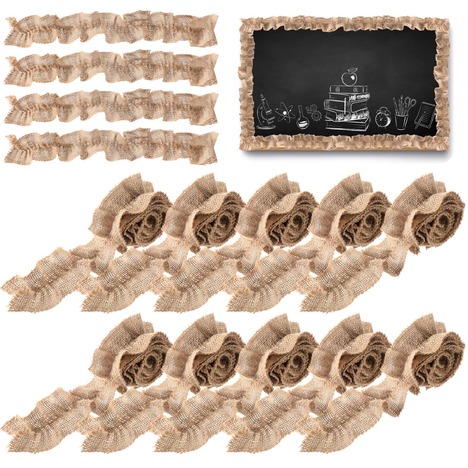 Fanfanwin 8 Rolls Burlap Ruffled Bulletin Board Borders for Classroom Decor Farmhouse Burlap Bulletin Board Trim DIY Crafts for Classroom Home|Home & Garden