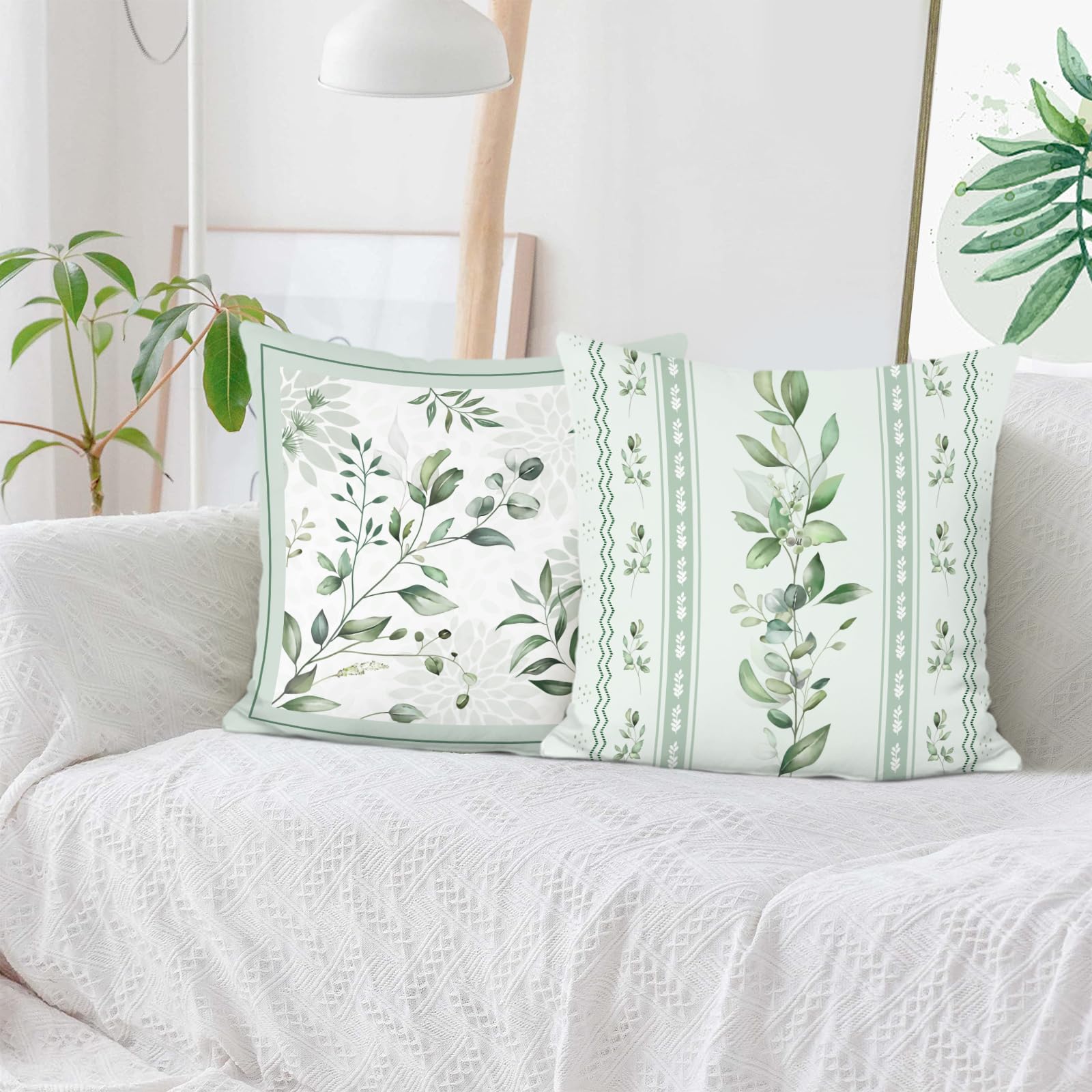 Bonhause Green Leaves Throw Pillow Covers 18 x 18 Inch Eucalyptus Leaf Dahlia Decorative Pillow Cases for Couch Sofa Bed Home Garden Patio Decor Set|Home & Garden