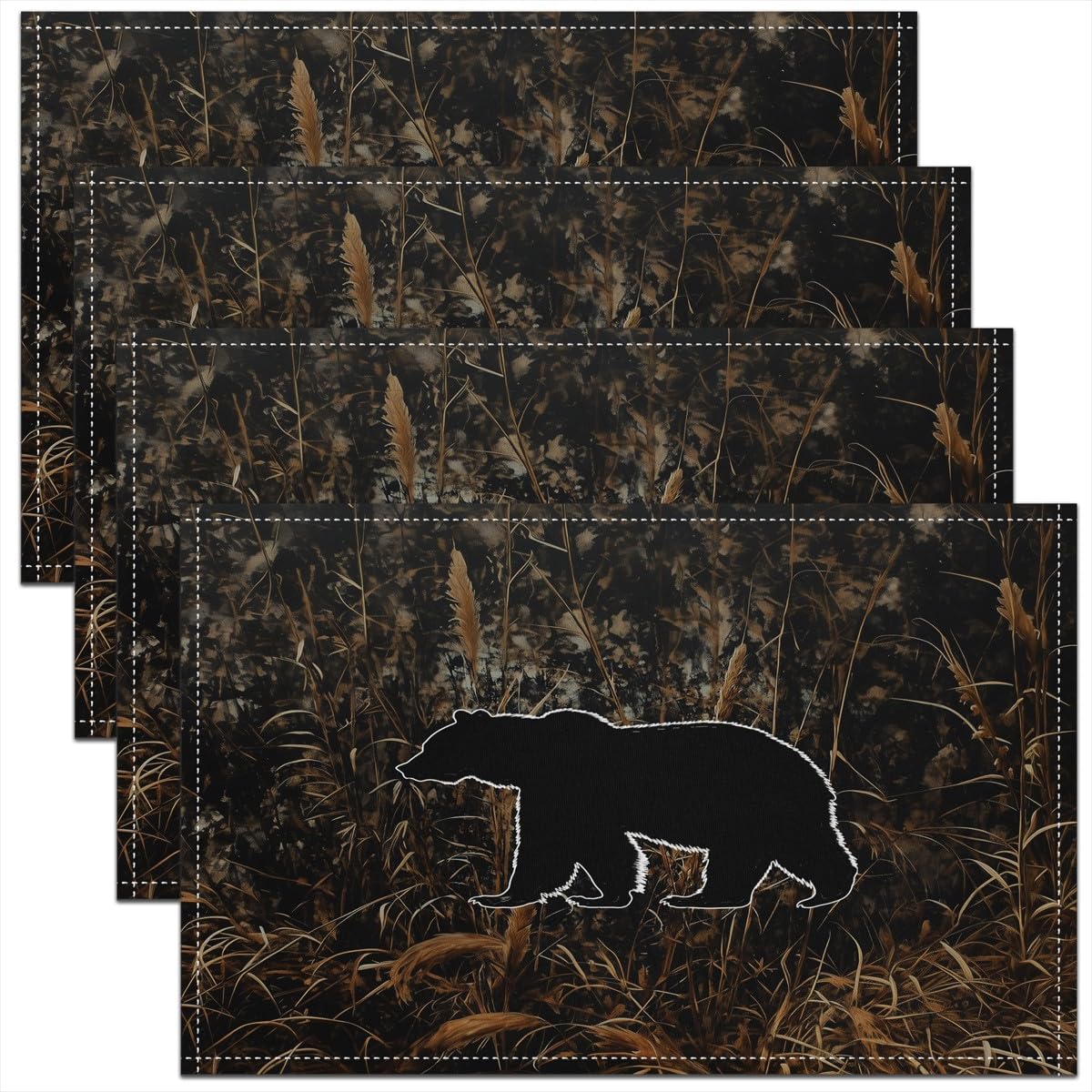 meiyoeat Rustic Bear Placemat for Kitchen Dining Table Decor Indoor Outdoor,Wildlife Hunting Cabin Lodge Table Place Mats,Kids Boys Girls,Wild Animal|Home & Garden