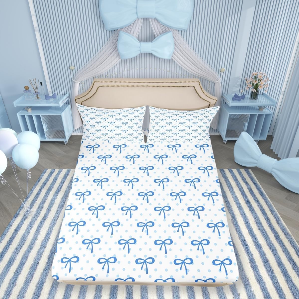 Manfei Cute Bowknot Girly Fitted Sheet Twin Size,Bow-tie Geometric Dots Patchwork Bedding Set,Girls Women Room Decor,Castle Princess Style Bed Cover,|Home & Garden