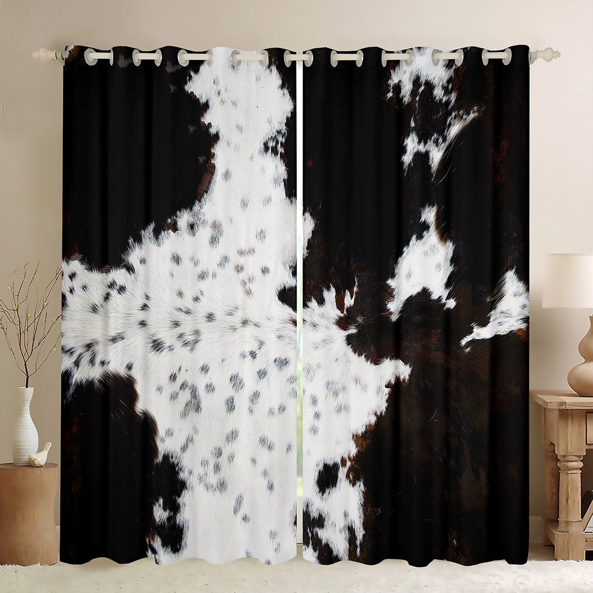 Manfei Abstract Cow Fur Blackout Curtains, White Black Brown Cowhide Print Window Drapes for Kids Boys Room Decor, Animal Skin Print Window Treatments|Home & Garden