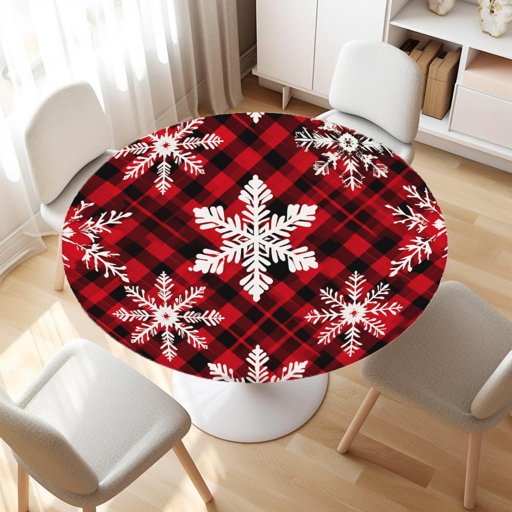 Round Christmas Tablecloth Snowflake Plaid Round Elastic Tablecloth Round Fitted Tablecloth 36" - 42", Christmas Fitted Table Cloth Waterproof|Home & Garden