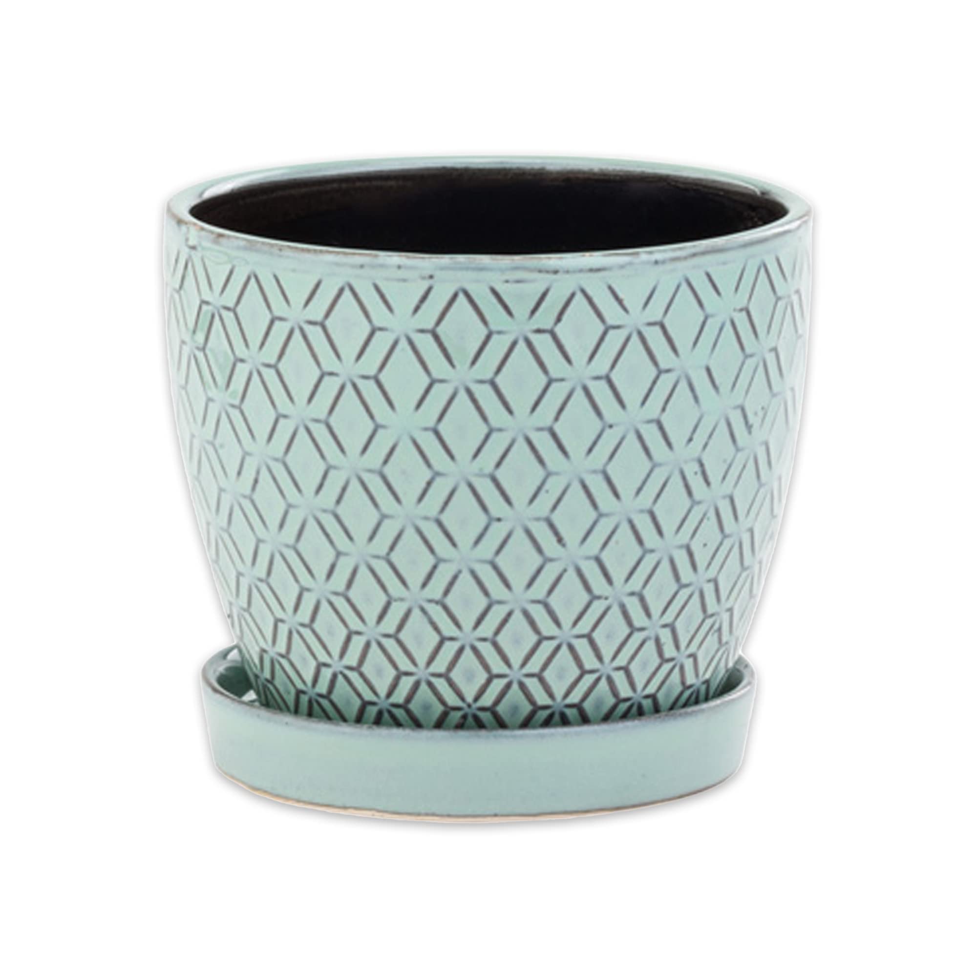 Napco Planters - Trellis Embossed Ceramic Plant Pot with Aqua Glaze for Indoor Plants Planter with Saucer, 6-Inch-Medium|Home & Garden
