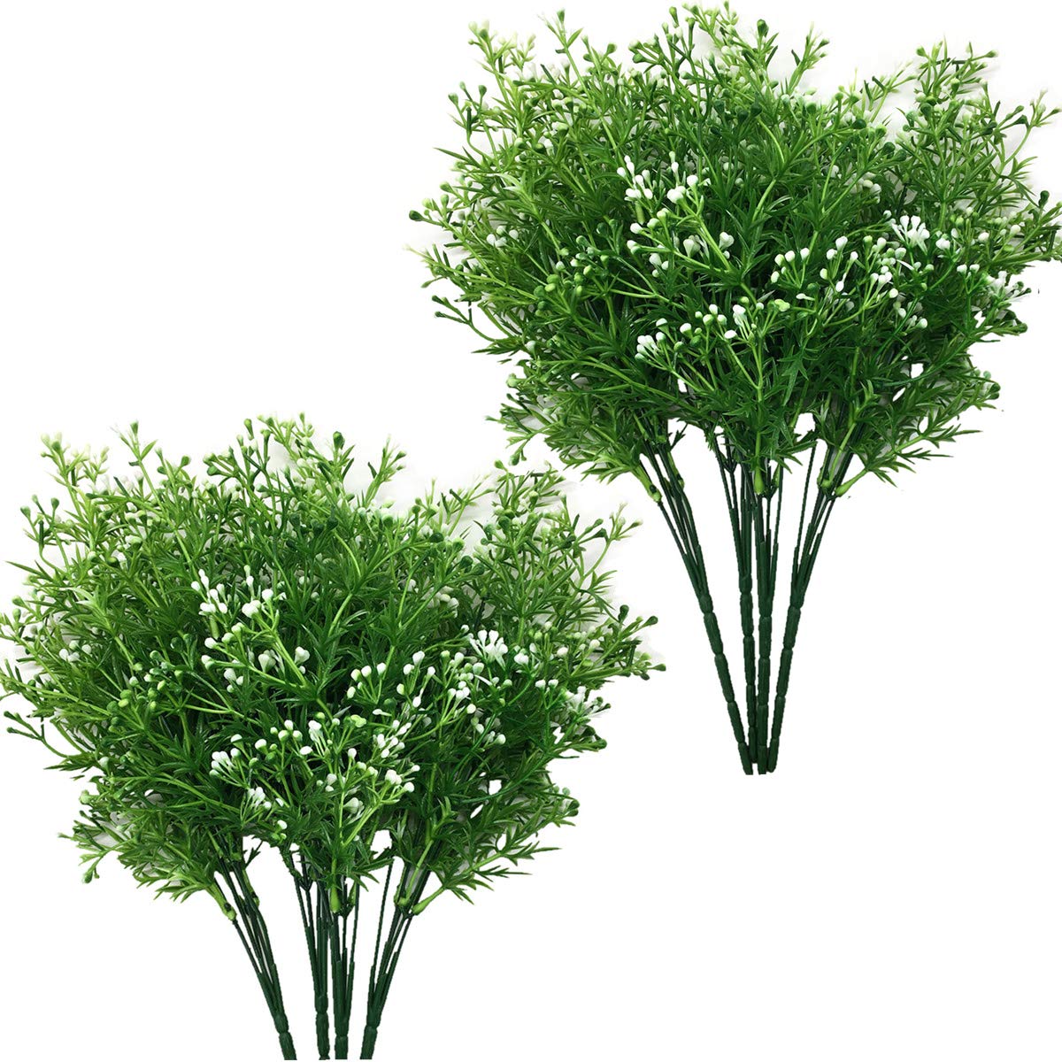 CATTREE Artificial Plants, Plastic Shrubs Faux Pearl Flowers Fake Grass Leaves Simulation Greenery Bushes Indoor Outdoor Home Garden Office Yard|Home & Garden