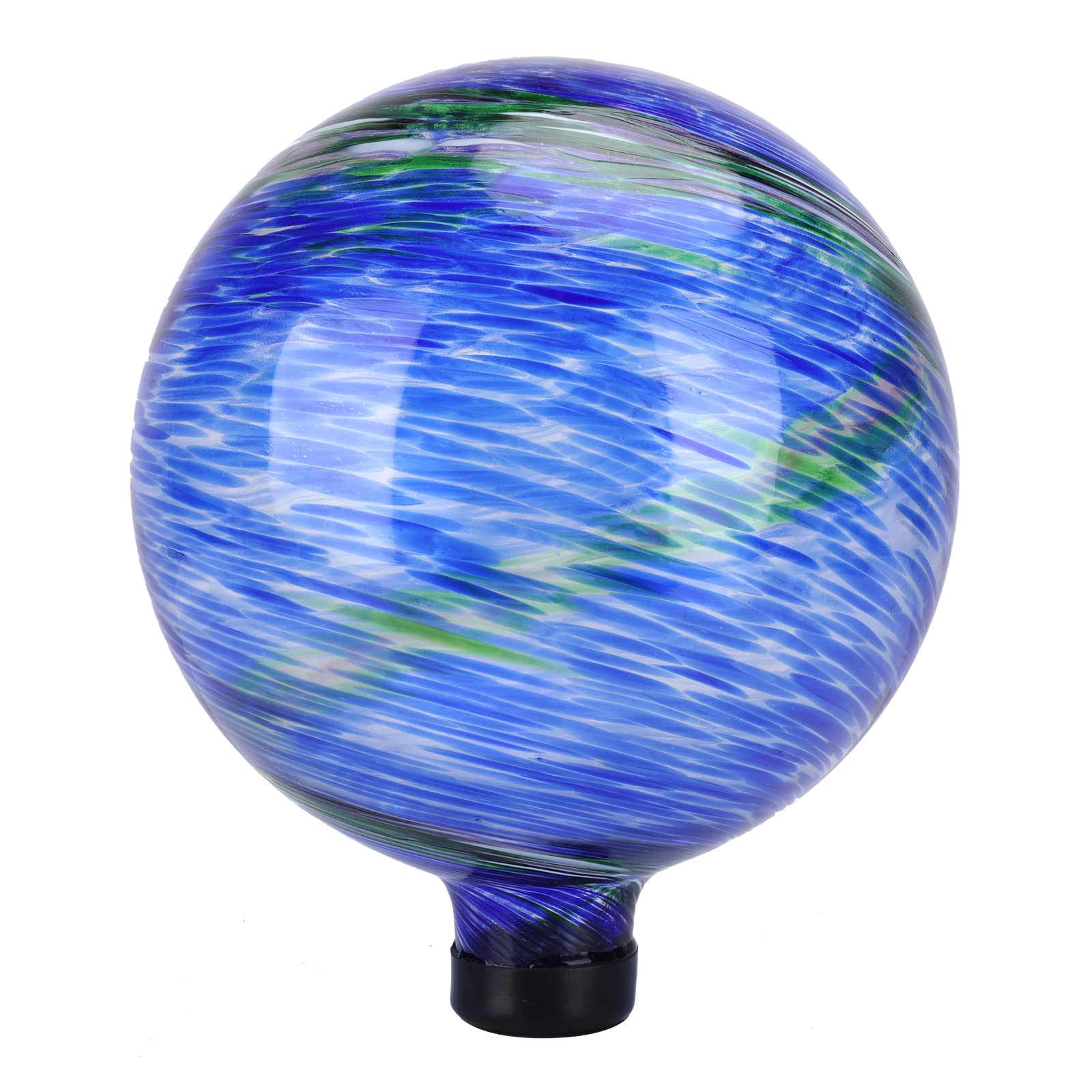 VCUTEKA Glass Outdoor Gazing Globe, Blue and Green Hand Painted Swirled Sphere for Patio Garden Gazing Ball Yard Ornament, 10 Inch|Home & Garden