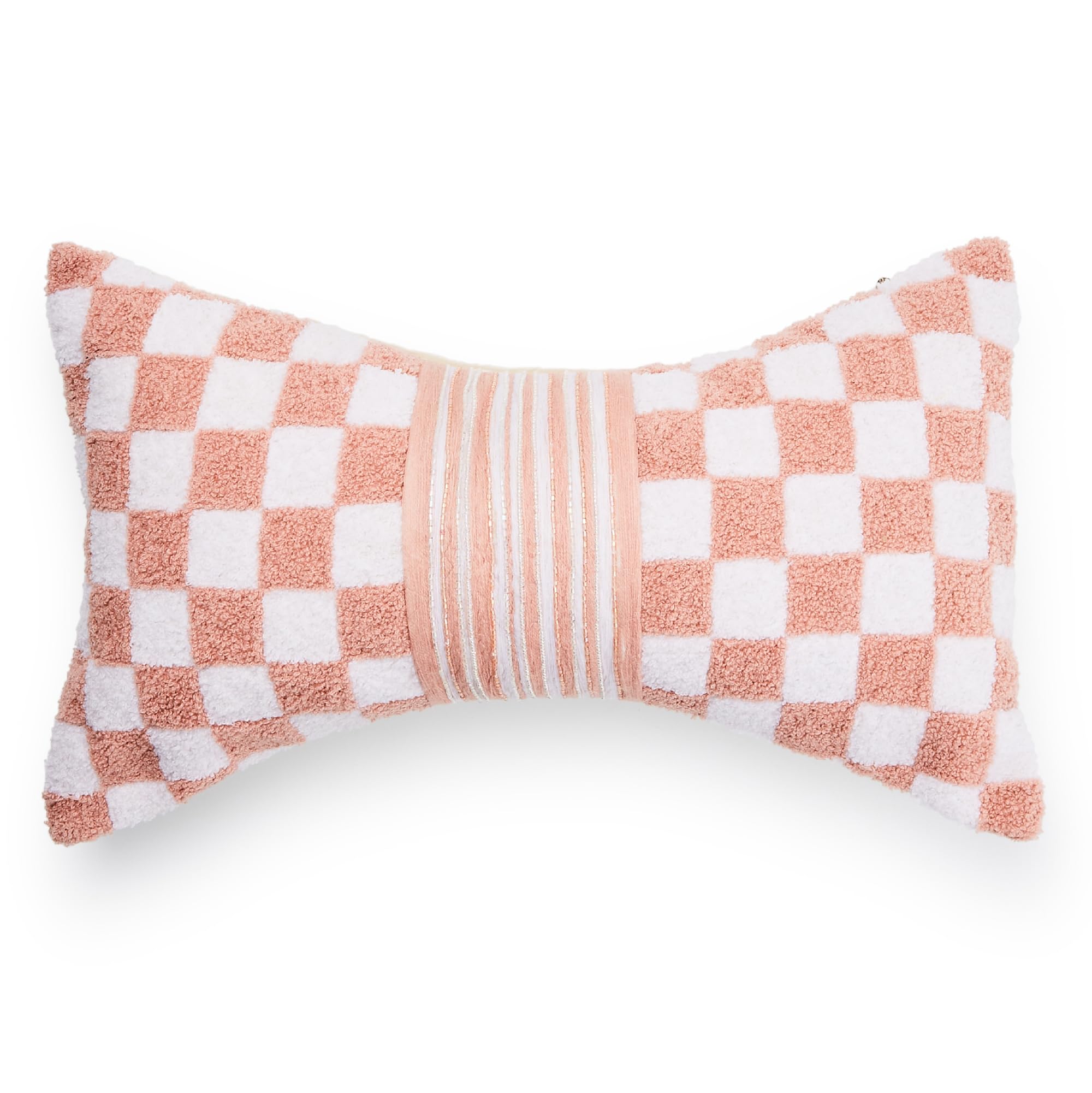 MACKENZIE-CHILDS Lumbar Throw Pillow, Decorative Polyester Pillow for Living Room, 11x20, Pink Check Bow|Home & Garden