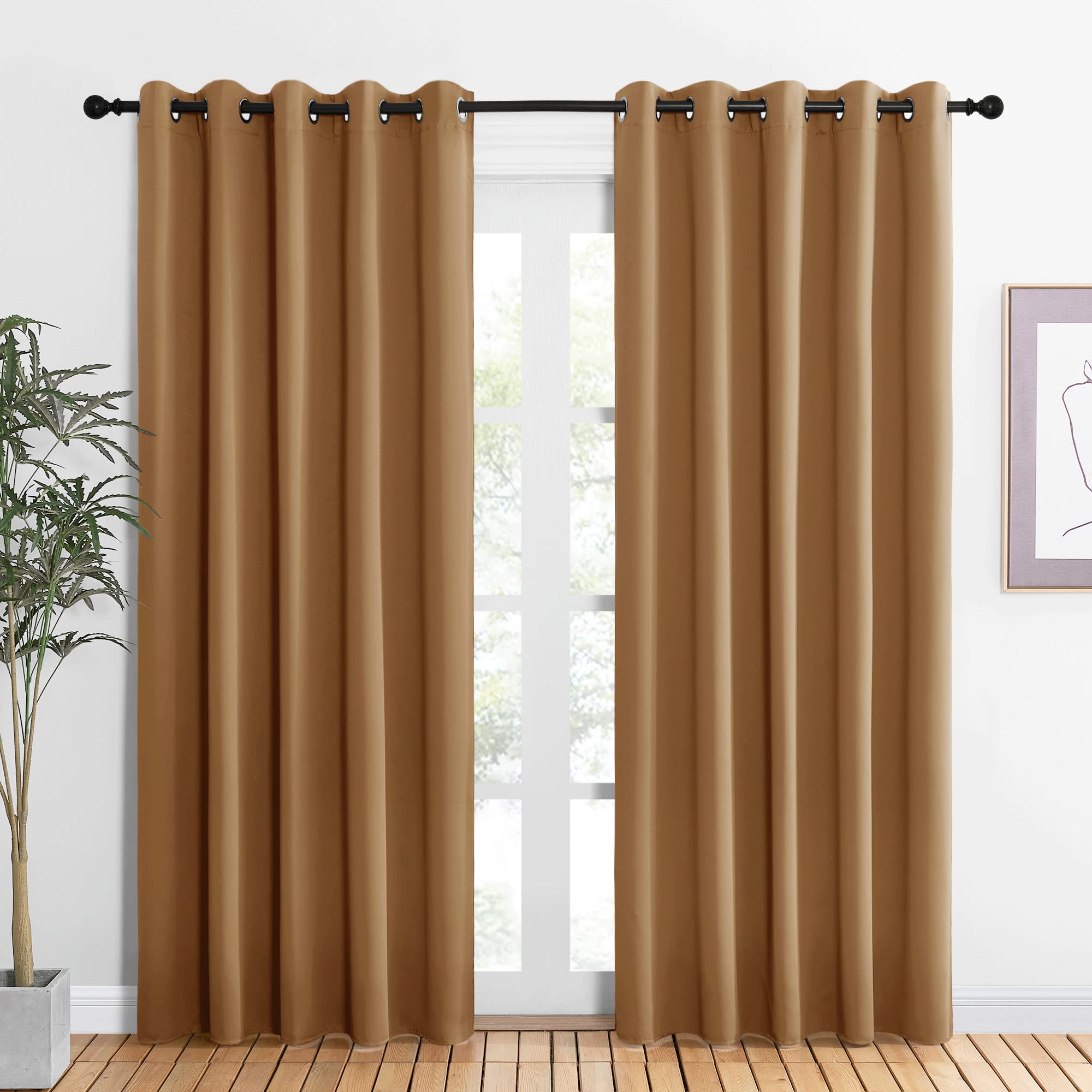 NICETOWN Blackout Draperies Curtains for Kids Room, Window Treatment Thermal Insulated Solid Grommet Blackout Drape Panels for Bedroom (Gold Brown,|Home & Garden