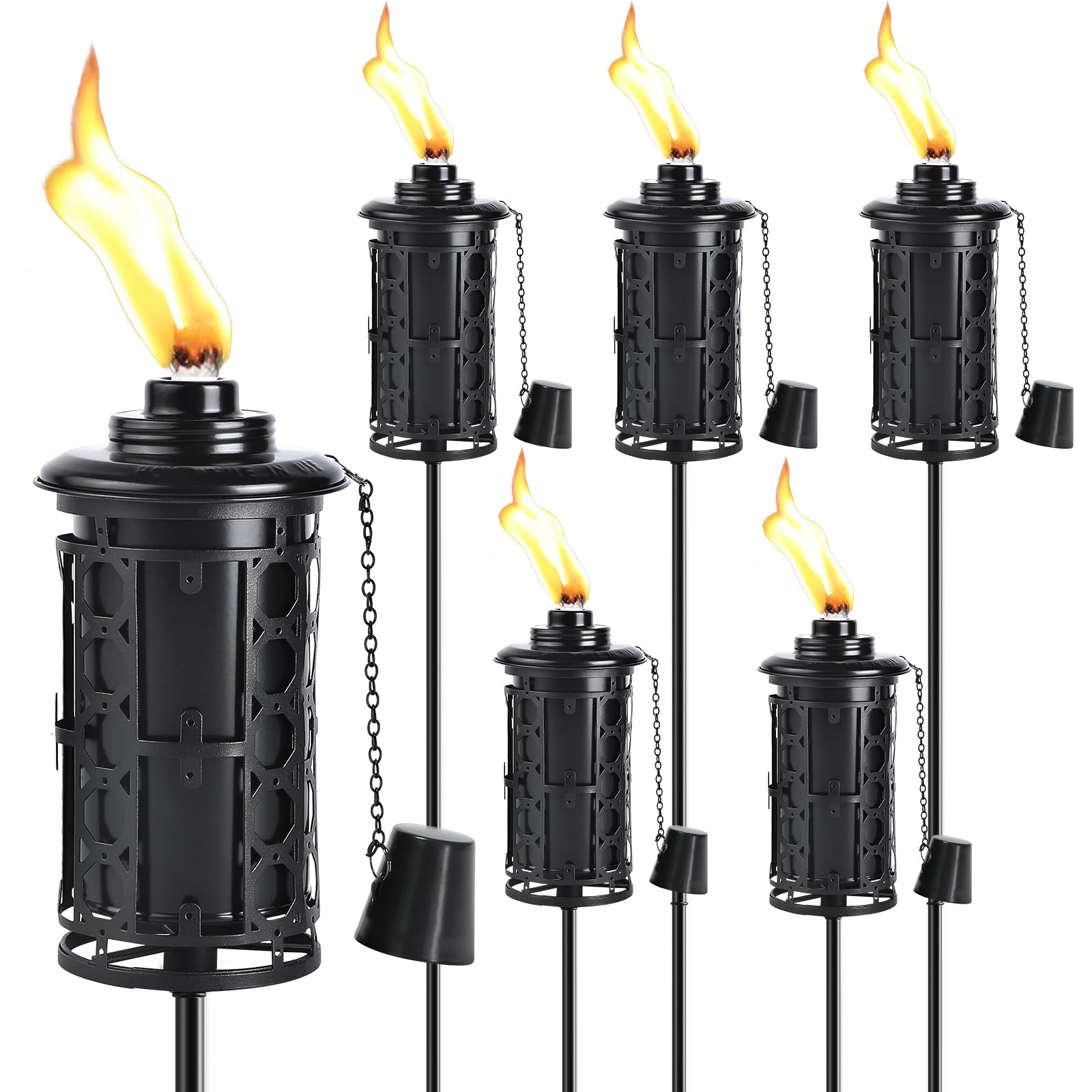 FAN-Torches 6-Pack Upgraded Home Garden Torch, Black Outdoor Metal Torch Garden Décor, 59-Inch Citronella Torches with 3-Prong Grounded Stake, Light|Home & Garden
