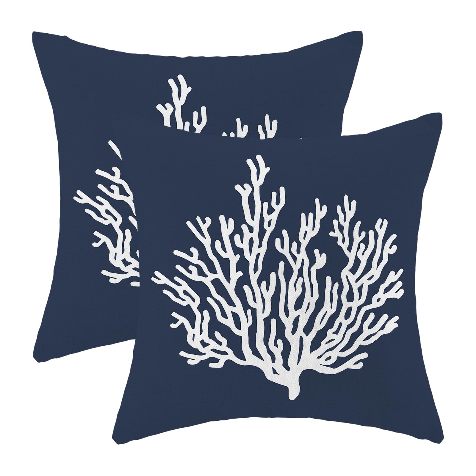 CXMEIFLY Navy Blue Coastal Pillow Covers 18x18 Inch Set of 2 Blue Coral Ocean Themed Beach Decor Throw Pillows Beachy Nautical Summer Outdoor|Home & Garden