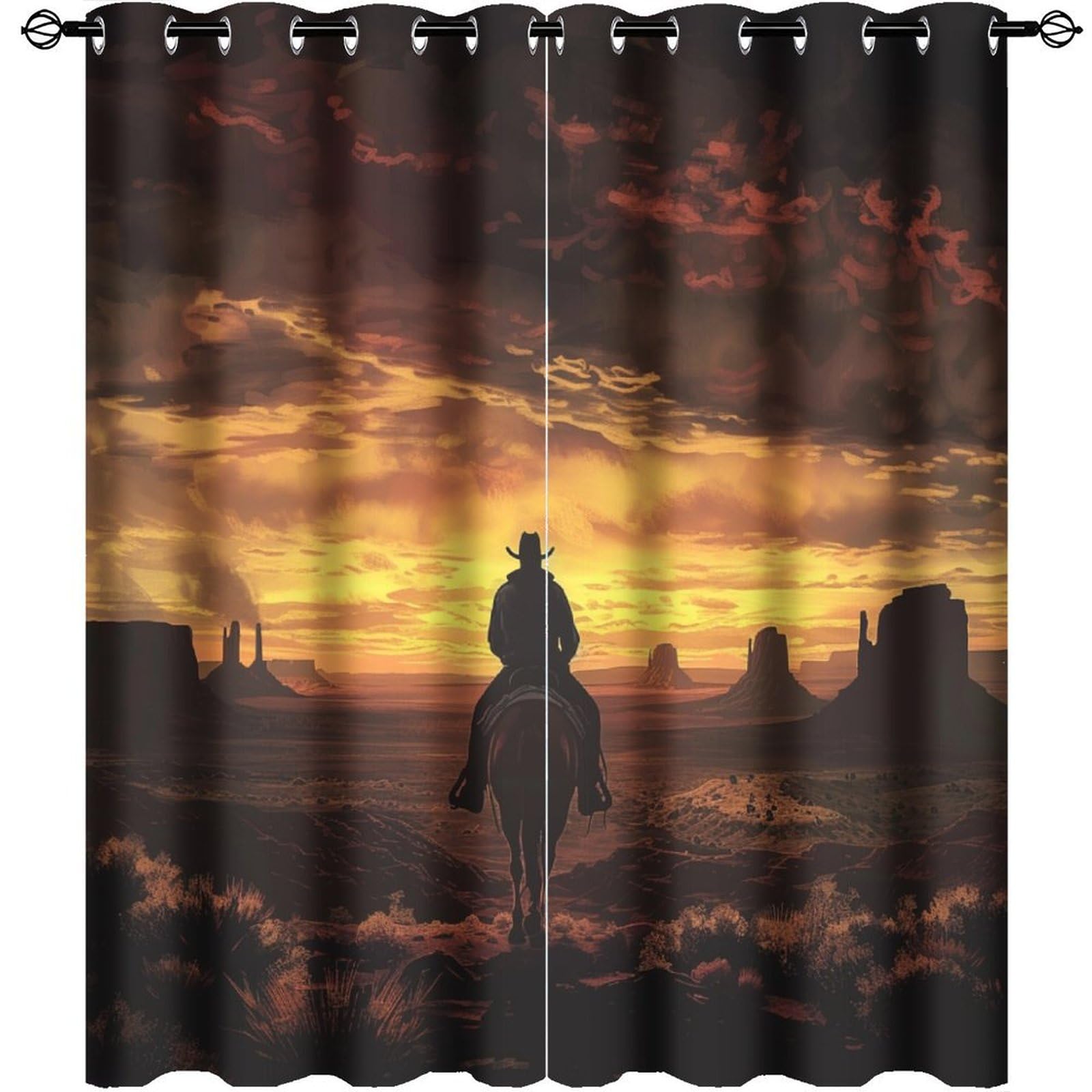 TOWINSFB Cool Cowboy Sunset Blackout Curtains for Bedroom/Living Room, Western Desert Horse Vintage Grommet Curtains Thermal Insulated Window Drapes,|Home & Garden