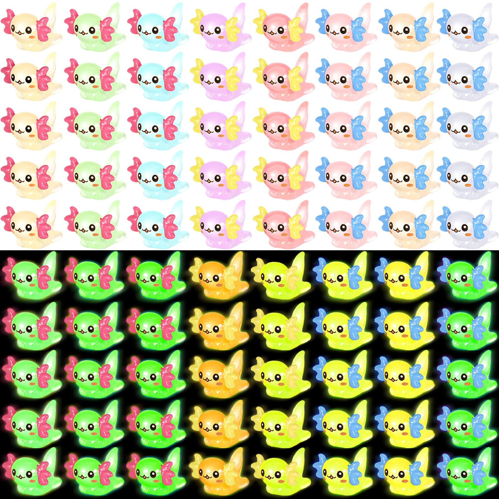 Guiqulai 80 Pcs Mini Resin Axolotl Luminous Small Axolotl Miniature Animal Figurine Luminous Mini Resin Animal Party Favors for DIY Garden Landscape|Home & Garden
