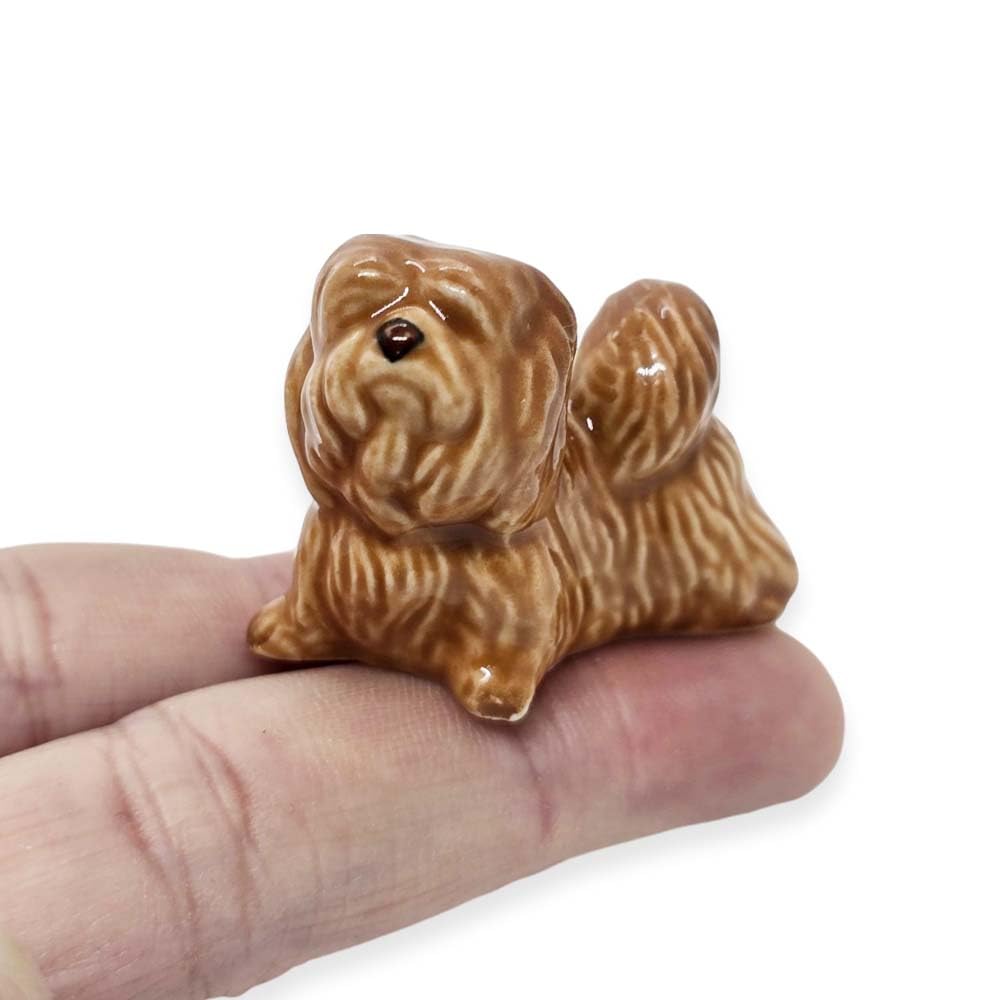 WitnyStore Tiny 1½" Brown Standing Shih Tzu Chinese Longhair Dog Figurine - Miniature Hand Made Painted Ceramic Dogs Puppy Hound Canine Animals Cute|Home & Garden