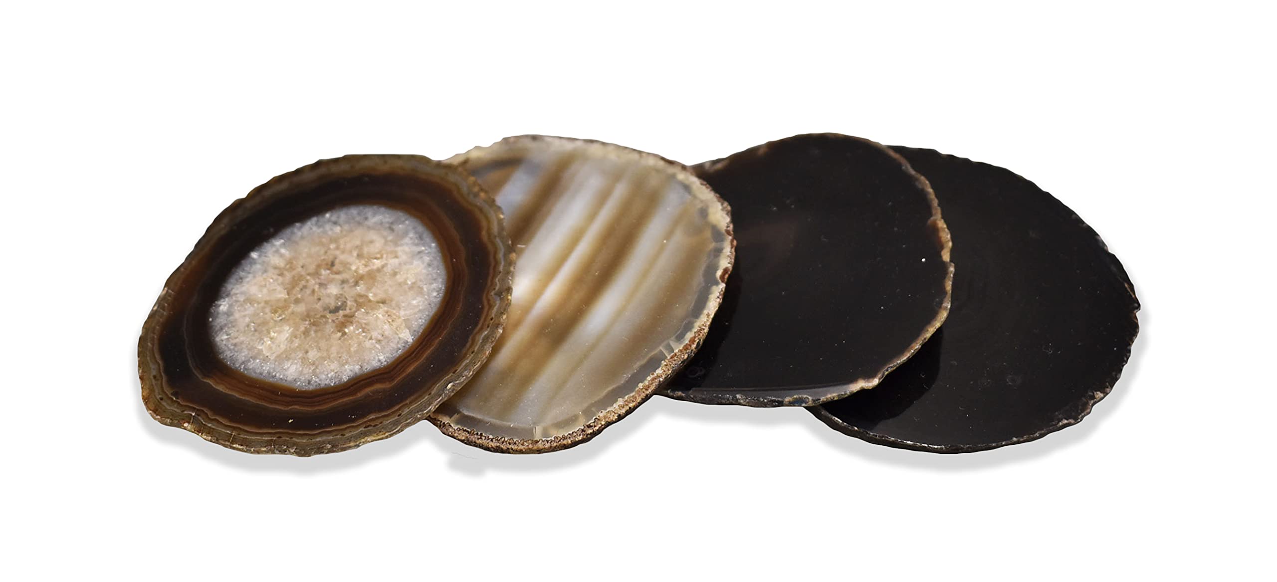 Nature's Decorations Brown Agate Stone Coasters - Set of 4, Polished Geode Drink Mats for Dining & Coffee Table & Kitchen Geode Decor Non-Toxic 4.5-5"|Home & Garden
