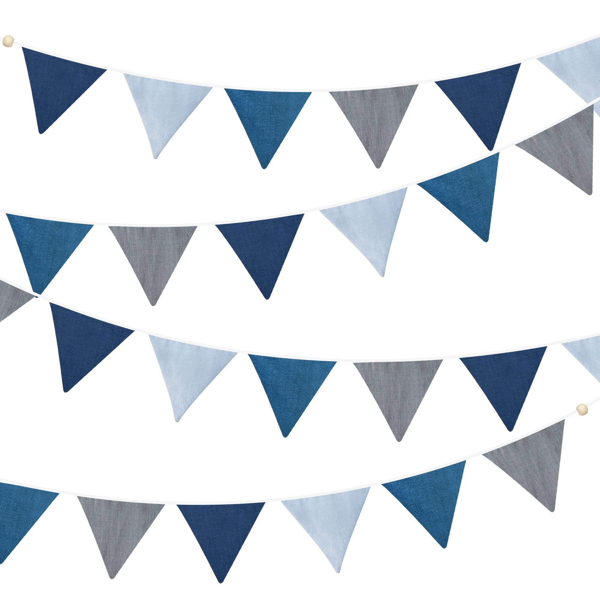 2 Sets of Blue Grey Nursery Garland 24Pcs Royal Fabric Linen Baby Banner Triangle Pennant Flags Streamers for Kids Boys Nautical Birthday Baby Shower|Home & Garden