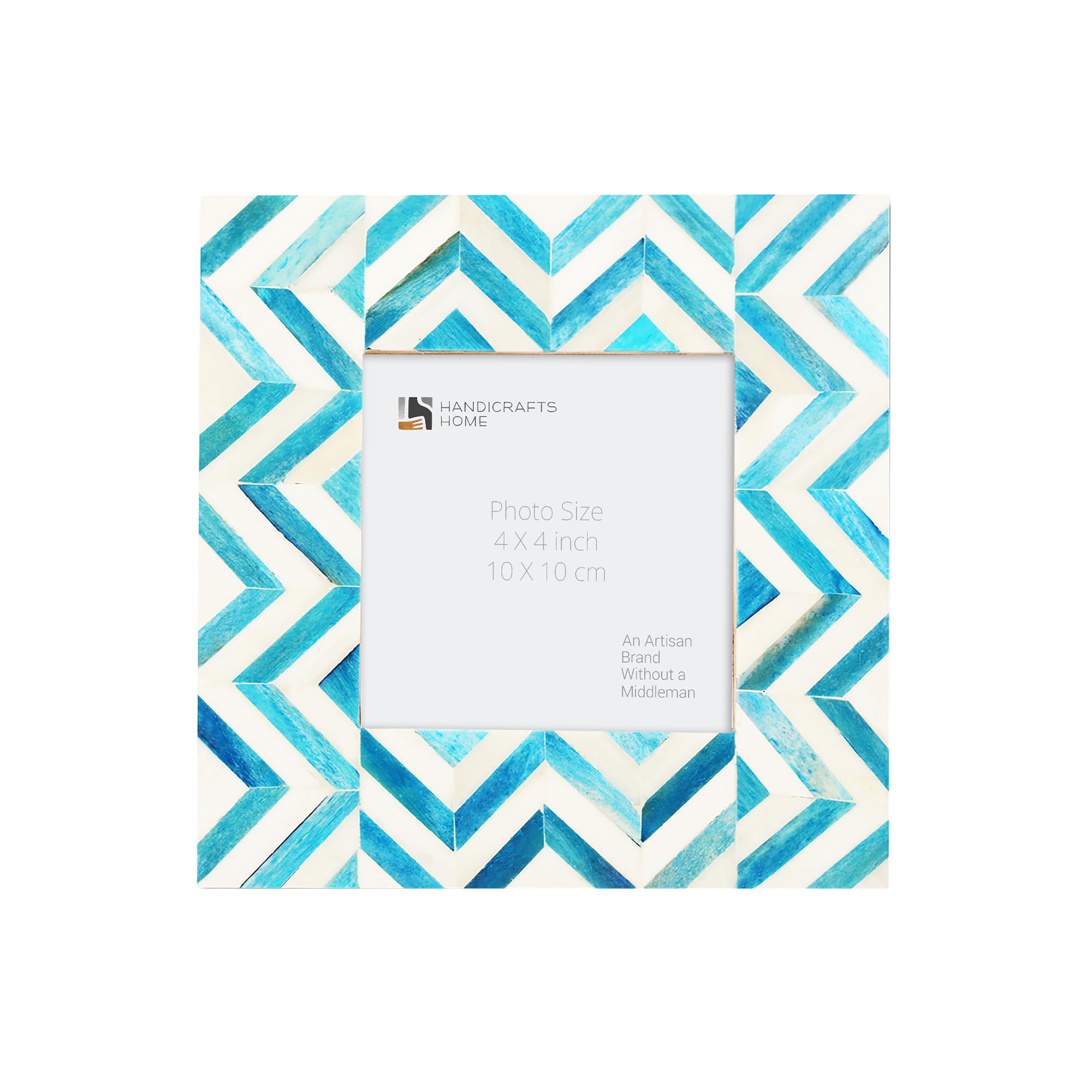 Handicrafts Home Picture Frames Photo Frame Chevron Herringbone Vintage Wooden Handmade Naturals Bone Classic Size 4x4 Inch (Turq)|Home & Garden