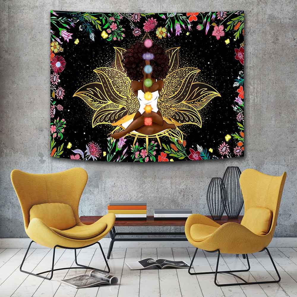 Ine Ive African Chakra Tapestry African American Woman Zen Meditation Tapestries 40x30 Inch Starry Sky Flower Garden Inspirational Afro Yoga Wall Art|Home & Garden