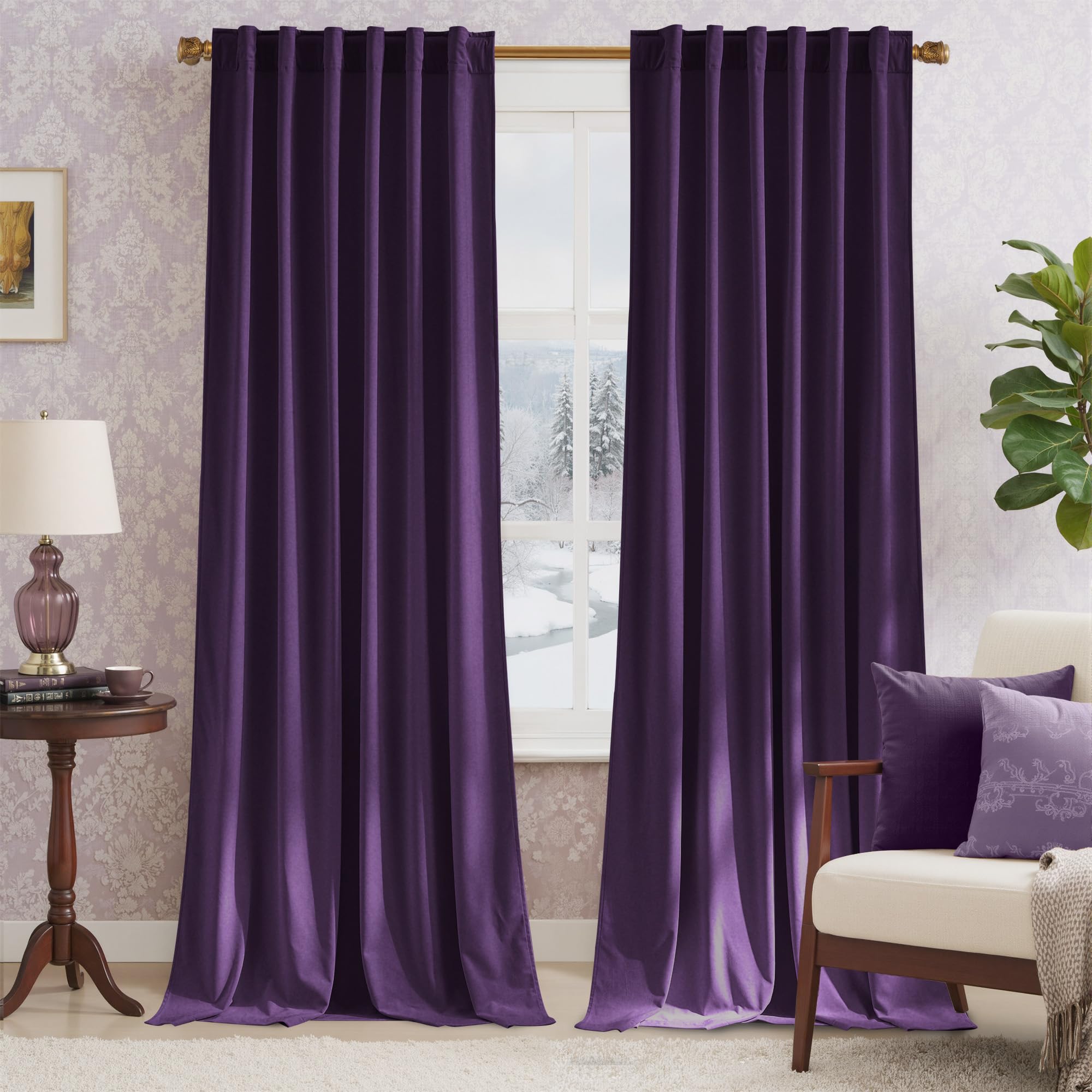 NICETOWN Purple Room Darkening Velvet Curtains, 84 inch Long, Living Room Back Tab & Rod Pocket Window Treatment Drapes Farmhouse for Theater, Set of|Home & Garden