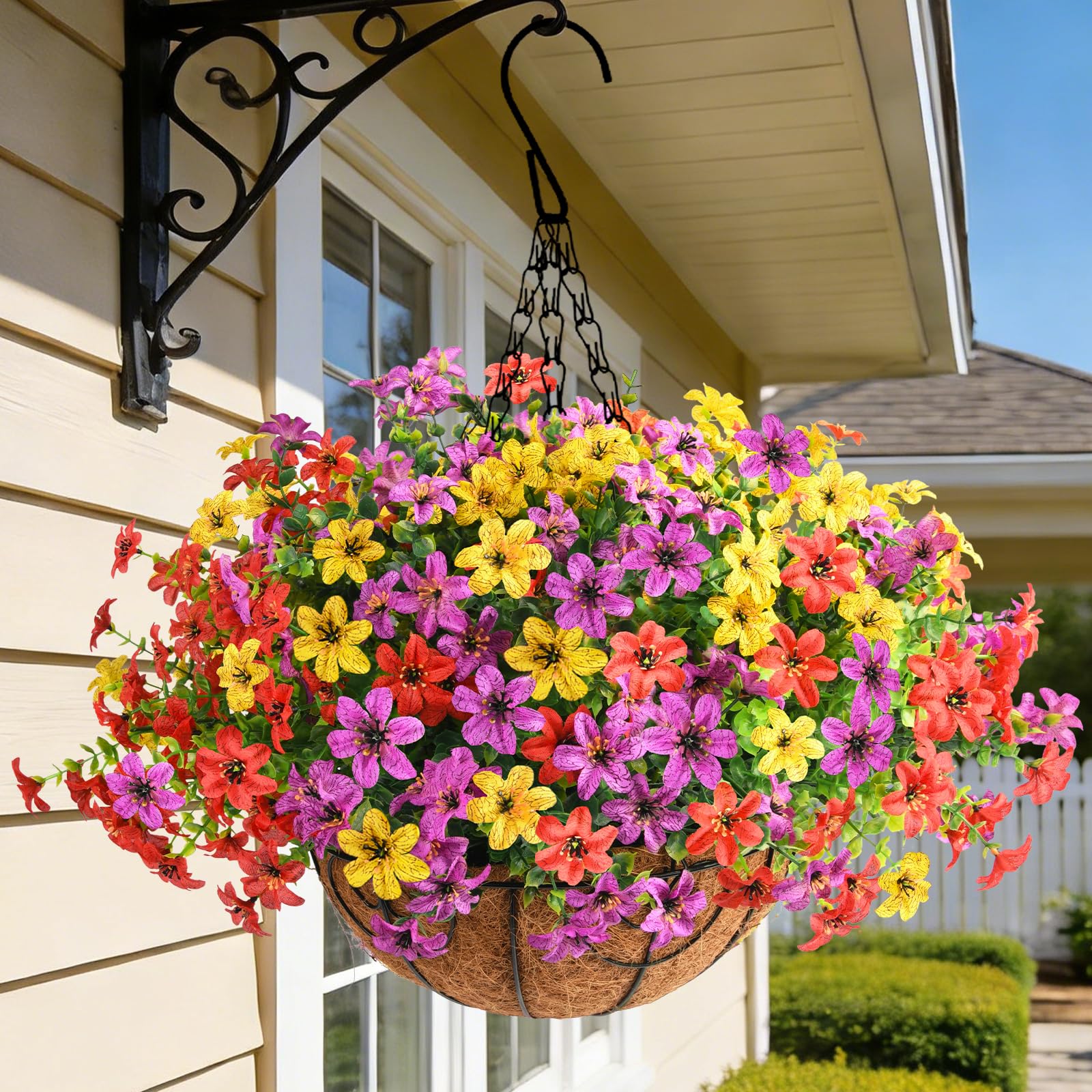 Artificial Flowers Hanging Baskets for Outdoors Spring Decor, 12 Bundles Fake Plants Faux Silk Daisy with Eucalyptus Stem UV Resistant for Basket|Home & Garden