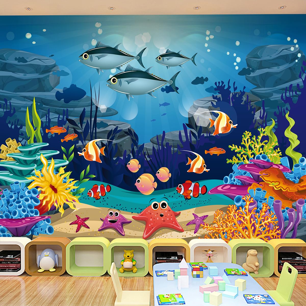 63 X 90inch Large Mysterious Undersea World Wallpaper Colorful Coral Ocean Fish Starfish Goldfish Wall Mural Underwater Scenery Grass Wall Art Peel|Home & Garden
