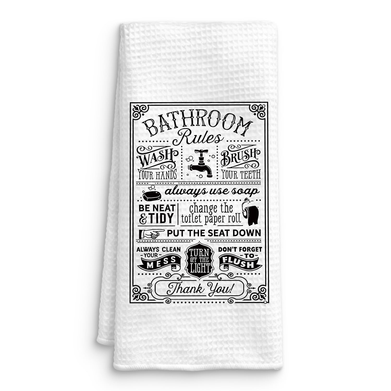 QICLM Funny Bathroom Rules Decorative Hand Towels, Funny Black and White Hand Towels, Black and White Bathroom Decor, 16x24 Inch|Kitchen & Dining